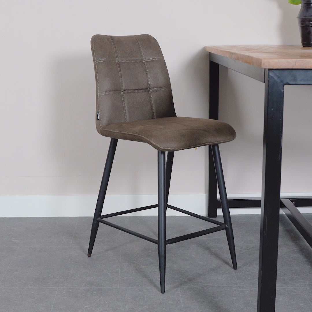 Deze trendy barstoel geeft je interieur een unieke twist. Tegen een bar of een verhoogde tafel geniet je hiermee optimaal zitgemak. De bekleding is gemaakt van zacht en stevig microstof. De poten lopen lichtjes naar buiten, waardoor het geheel solide staat. Deze barstoel past onder alle bartafels uit ons assortiment!