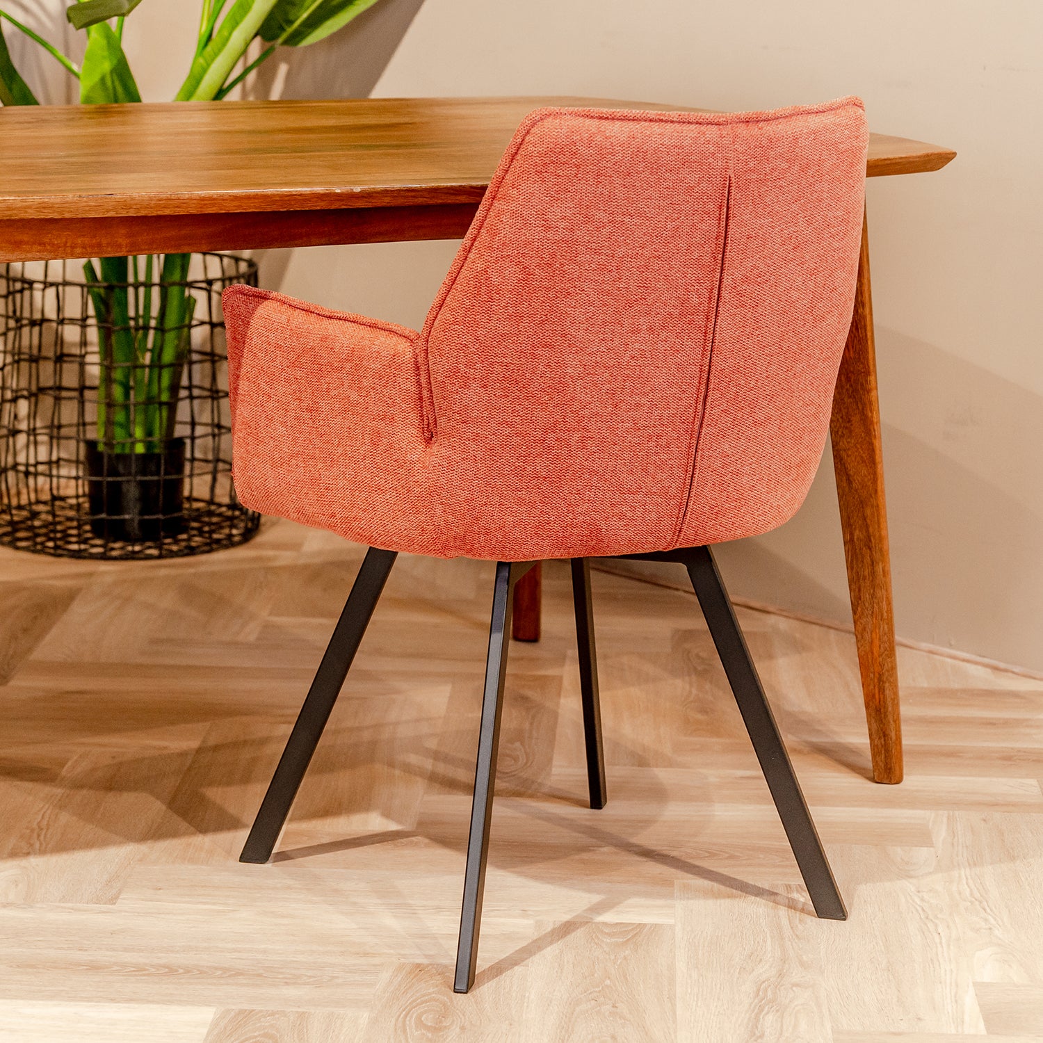 De eetkamerstoel Louise is voorzien van armleuningen, wat zorgt voor extra comfort tijdens maaltijden of gezellige avonden met vrienden en familie. De combinatie van de stoffen bekleding en het gecoate staal geeft deze stoel een moderne uitstraling die moeiteloos past in diverse interieurstijlen.
