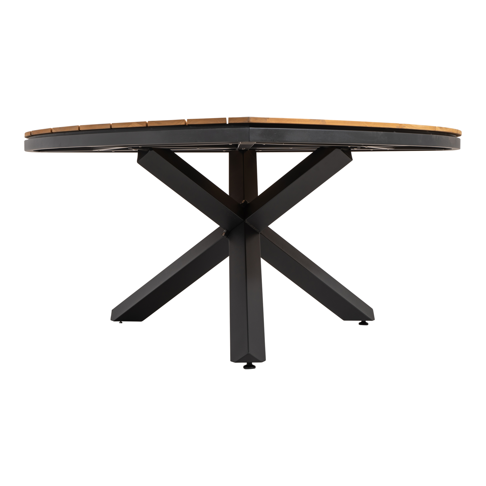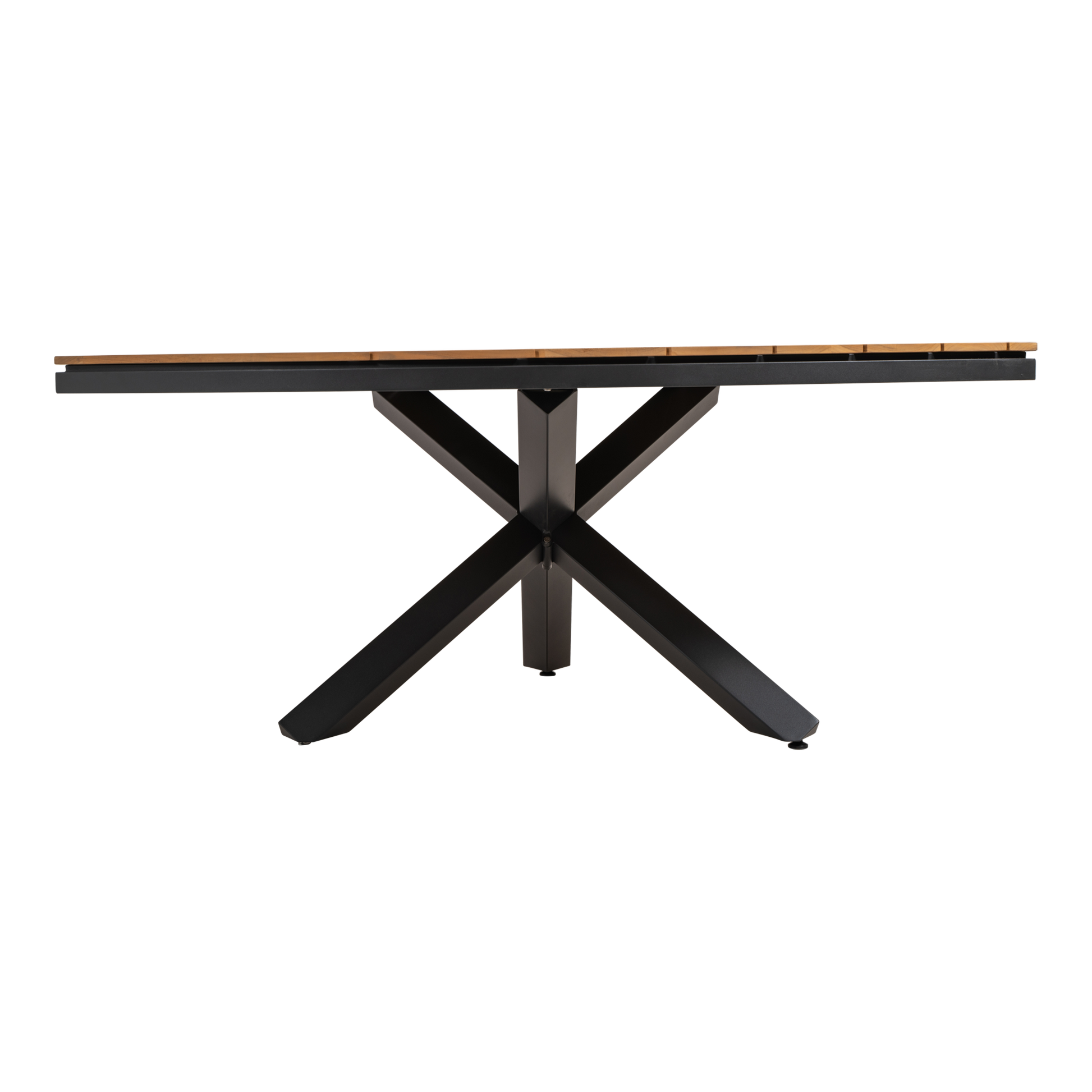 De tuintafel beschikt over een robuust aluminium frame in een antracietkleur, wat zorgt voor zowel duurzaamheid als een moderne uitstraling. Het tafelblad is gemaakt van teakhout, wat de tafel een warme, natuurlijke look geeft en tegelijkertijd duurzaam en milieuvriendelijk is.