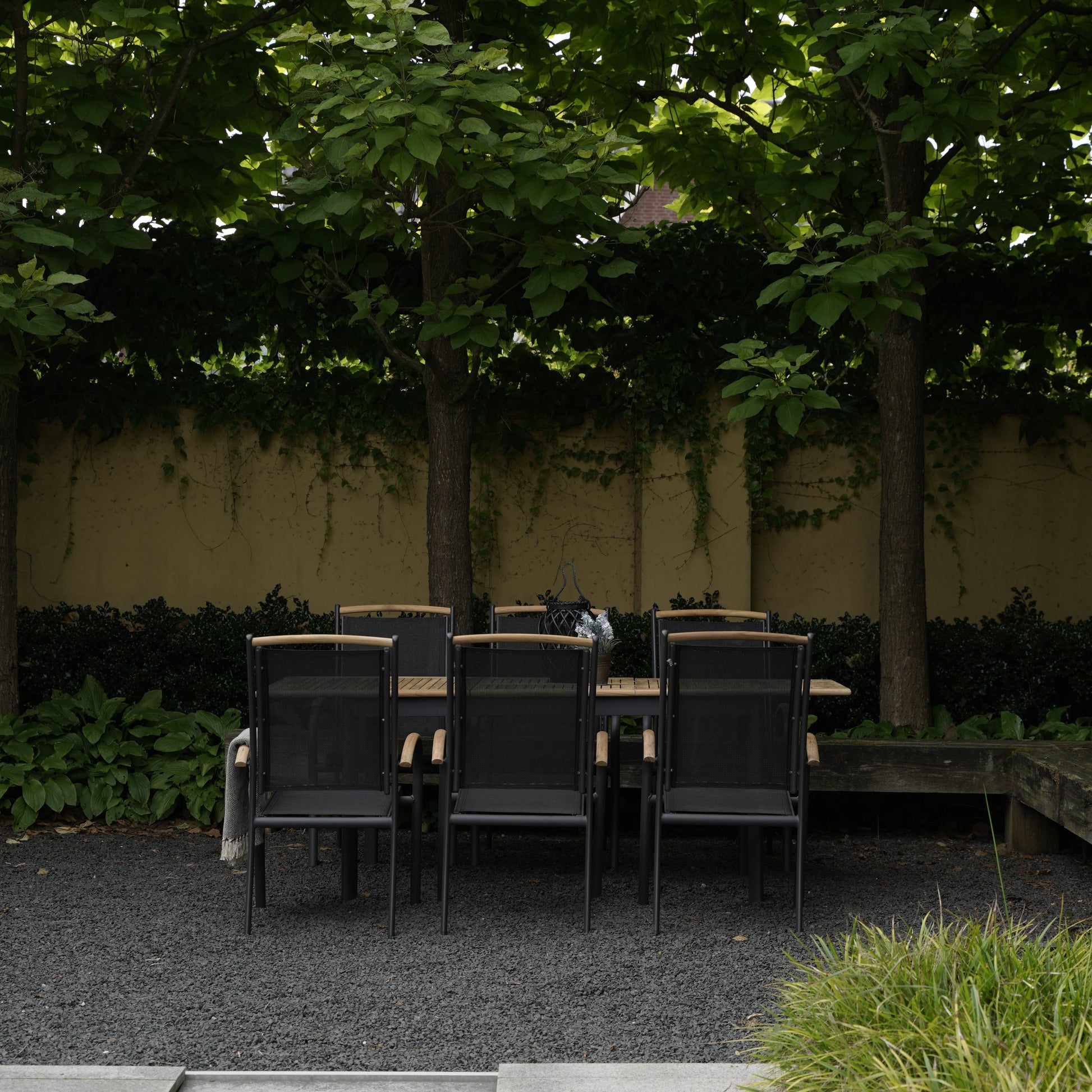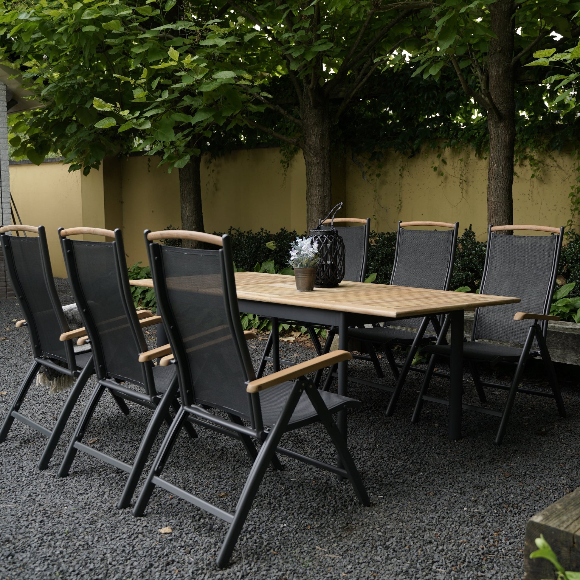 Het frame van de tafel is vervaardigd uit hoogwaardig aluminium met een elegante charcoal afwerking. Dit zorgt niet alleen voor een moderne uitstraling, maar maakt de tafel ook lichtgewicht en eenvoudig te verplaatsen. Het aluminium is uiterst duurzaam en bestand tegen diverse weersomstandigheden, zodat je tafel jarenlang meegaat. De strakke lijnen en de antracietkleur geven een tijdloze touch aan je buitenruimte.