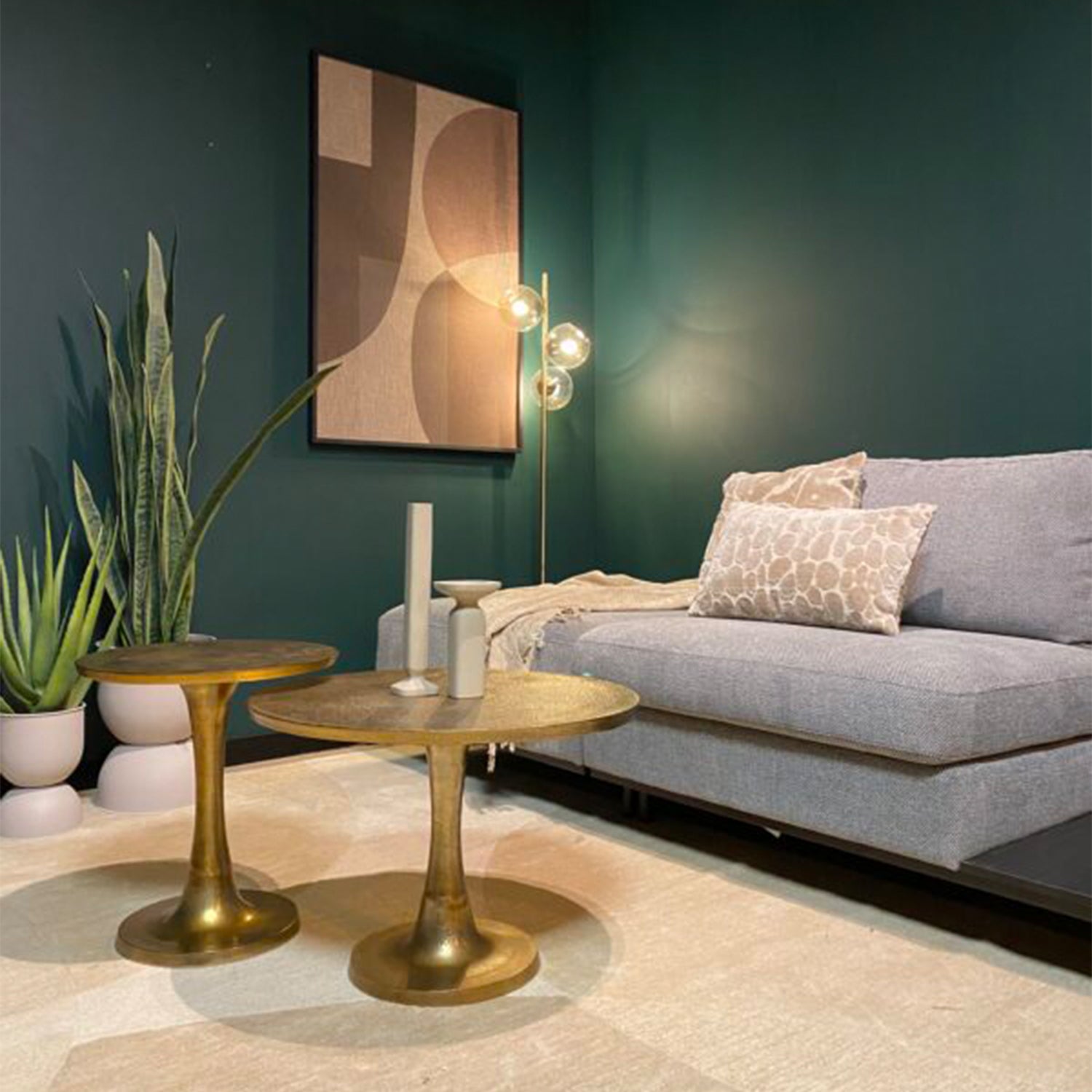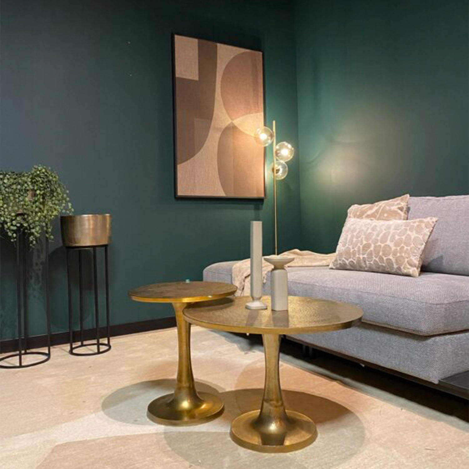 Salontafel Amara is volledig gemaakt van aluminium. De tafel is afgewerkt in antiek goud en te verkrijgen in maat: Low en High.
