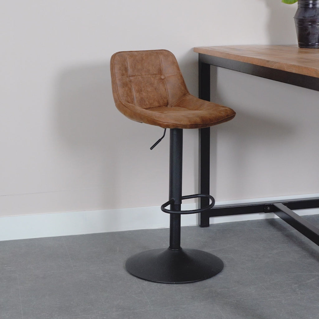 De draaibare barkruk heeft een metalen frame met stoere uitstraling. De kunststof vloerbeschermers zijn toegevoegd voor extra bescherming van de vloer.