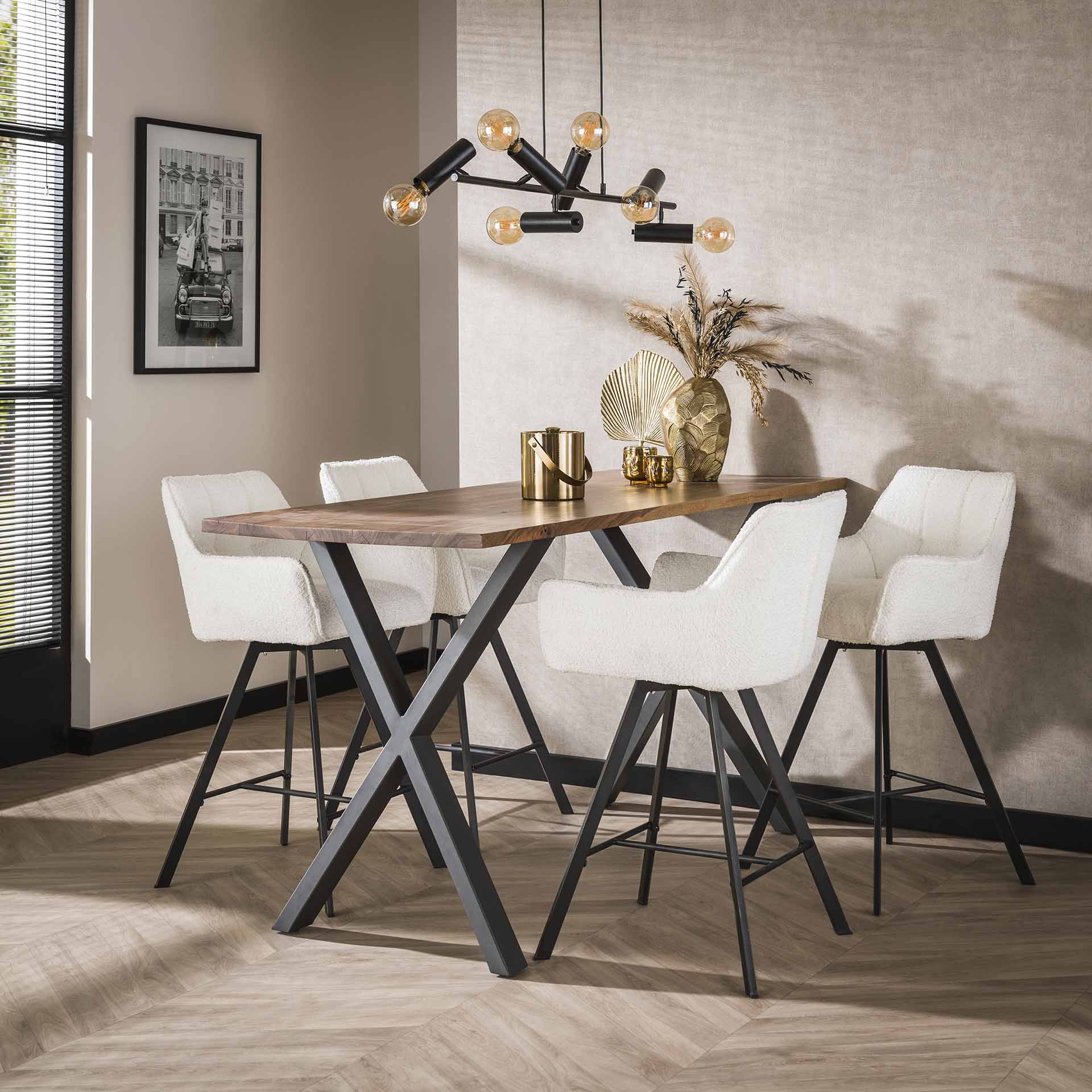 De barstoel bouclé heeft een chique uitstraling en is uitgevoerd in meerdere stoffen en kleuren, dus er is er ook eentje te vinden voor jouw interieur. De stoel wordt per 2 stuks verpakt.