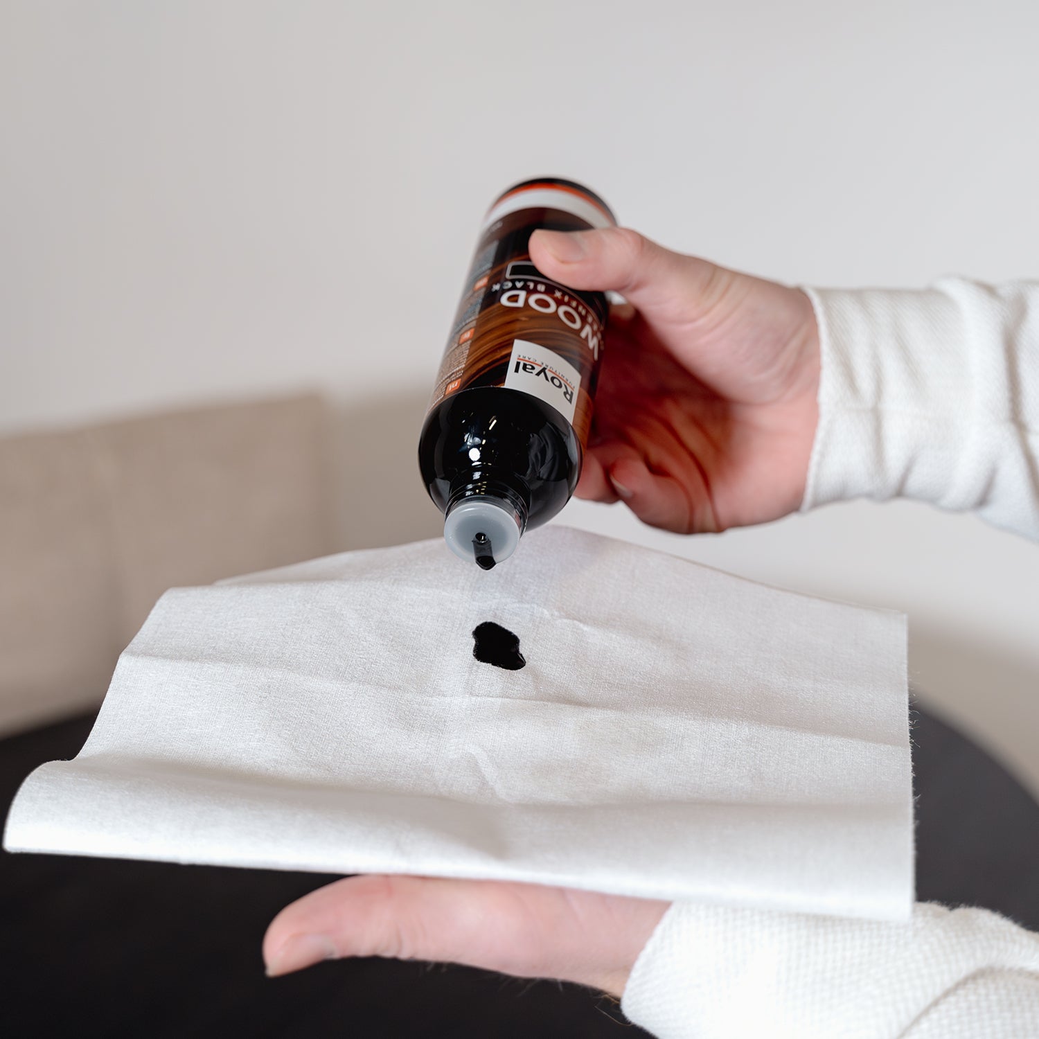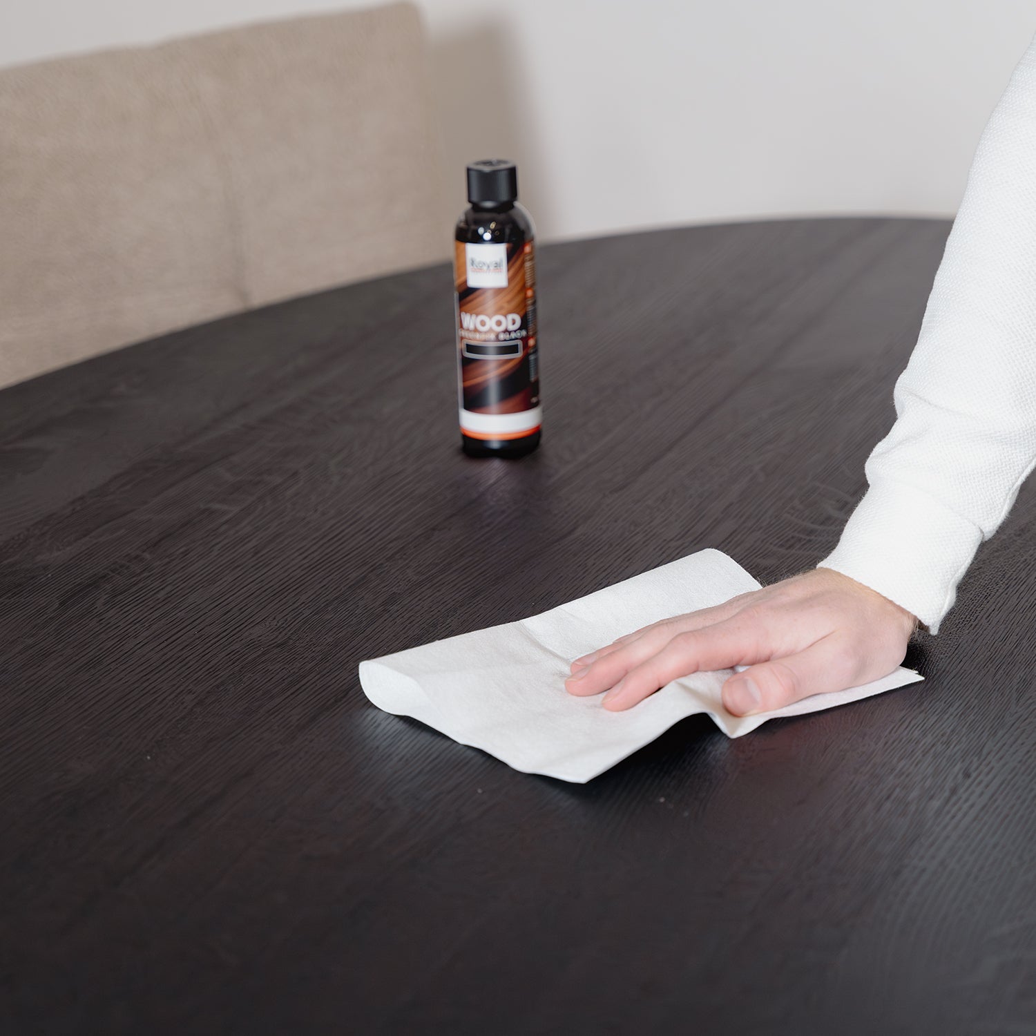 Na enkele minuten kunt u met een droge doek nawrijven. Tijden het drogen is het raadzaam om de ruimte goed te ventileren. De doordrenkte doek ik zelfontbrandbaar. Na de behandeling de doek goed met water uitspoelen of de doek in een koker bewaren.
