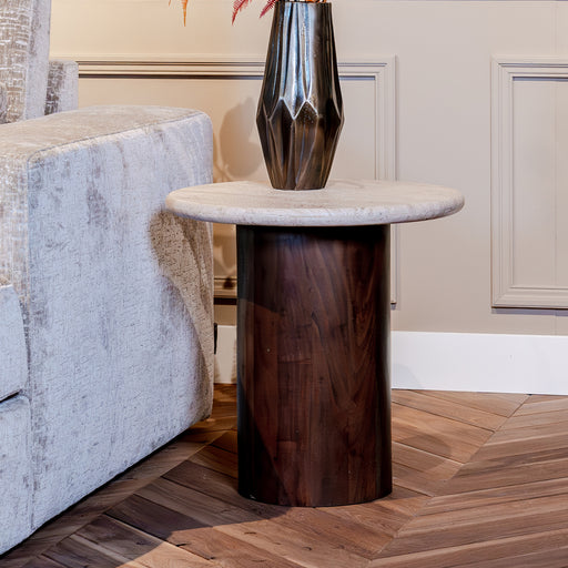 • Bijzettafel Avalon | Rond | Travertin | Brons