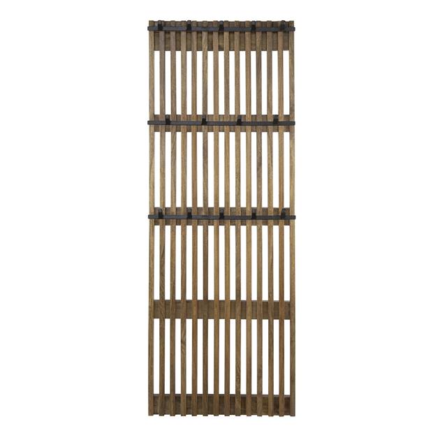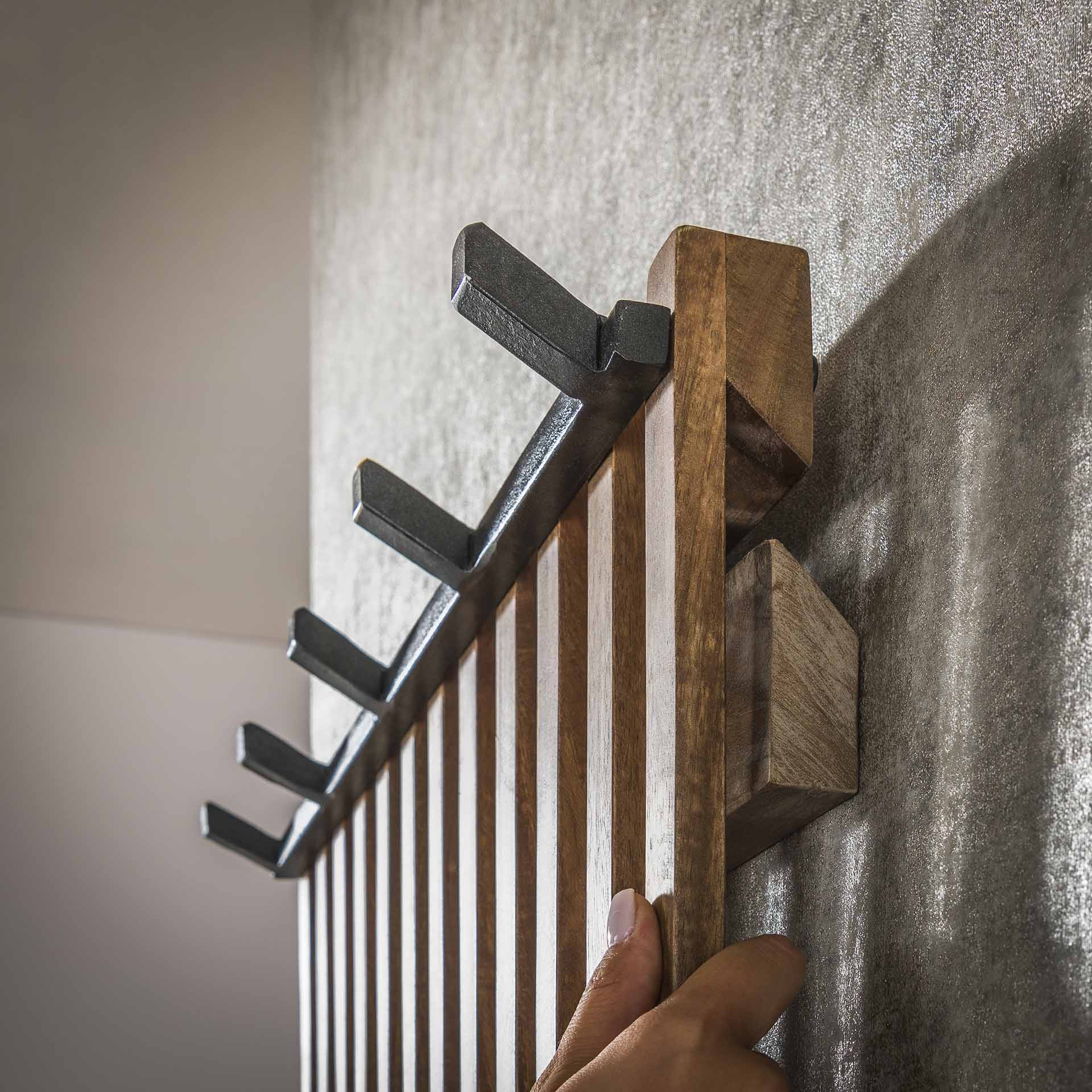 Het kapstokrek is gemaakt van massief mango hout. Het heeft een mooie zandkleurige kleur en ziet er heel speciaal uit. Ook heeft het een stoere uitstraling, dat is de kapstok industrieel stijl. Deze kapstok is ook goed te combineren met onze andere wandmeubels. Het is gemaakt van stevig kapstok hout van mango, waardoor het een duurzame keuze is.