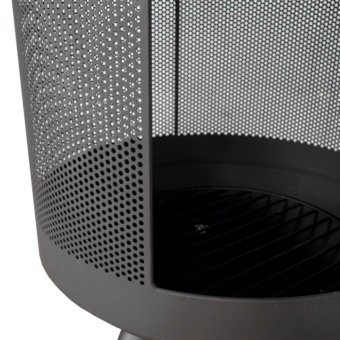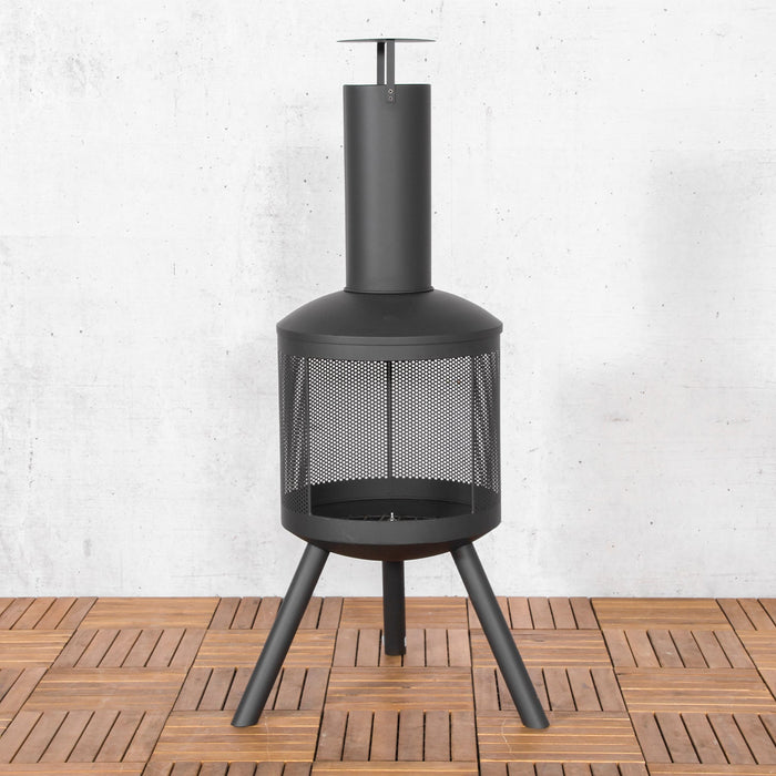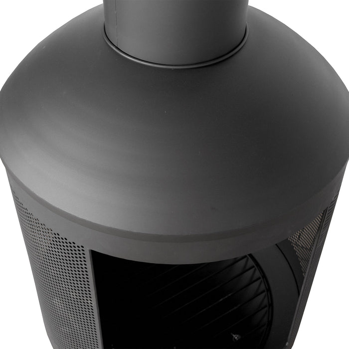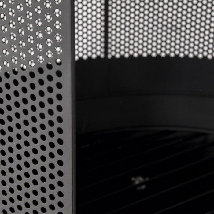 De sfeerhaard is perfect voor het creëren van een warme en uitnodigende sfeer tijdens koele avonden. Gemaakt van hoogwaardig zwart metaal, combineert deze haard duurzaamheid met een elegant ontwerp dat naadloos past in elke buitenomgeving.