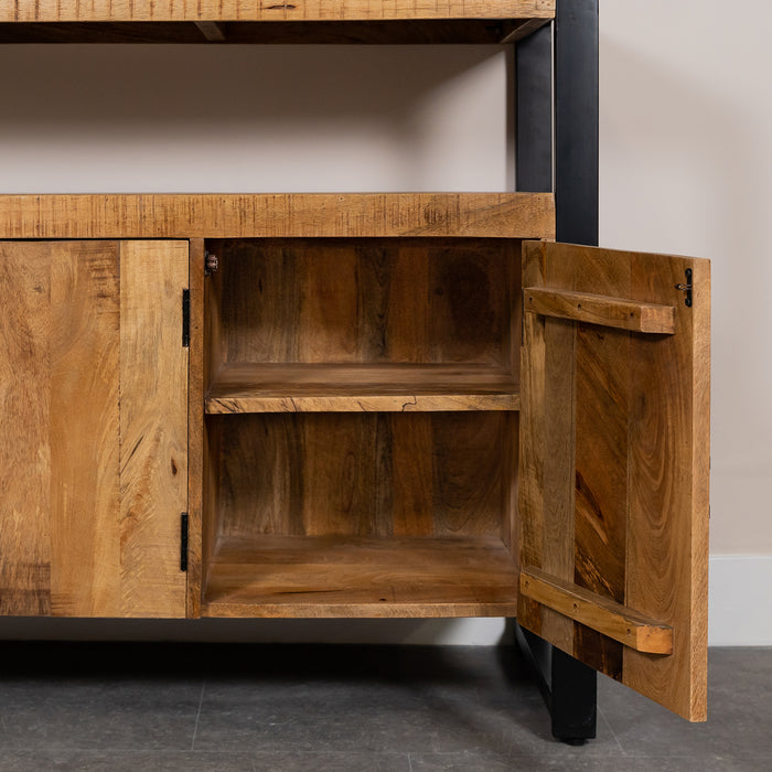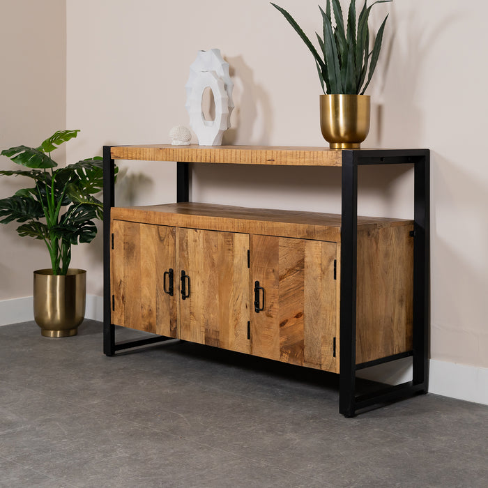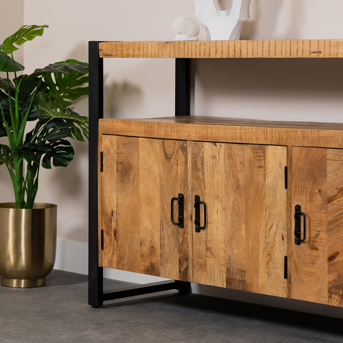 Dressoir Britt Mangohout is een stoer dressoir met een prachtige warme uitstraling. Het zwarte staal gecombineerd met mangohout maken dit meubel speciaal en zorgt ervoor dat hij goed past binnen een industrieel interieur.