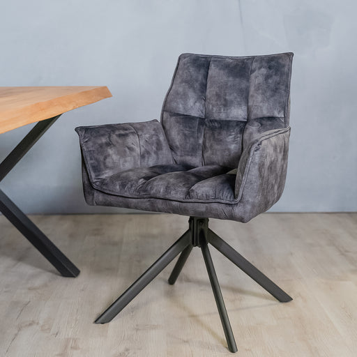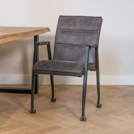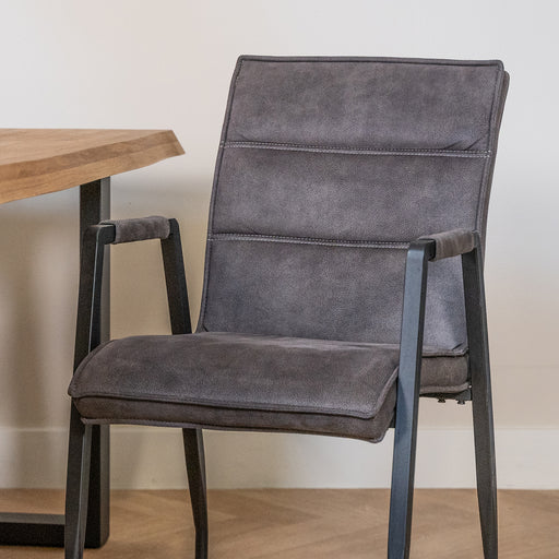 • Eetkamerstoel Ferro | Met Armleuning Microvezel Antraciet