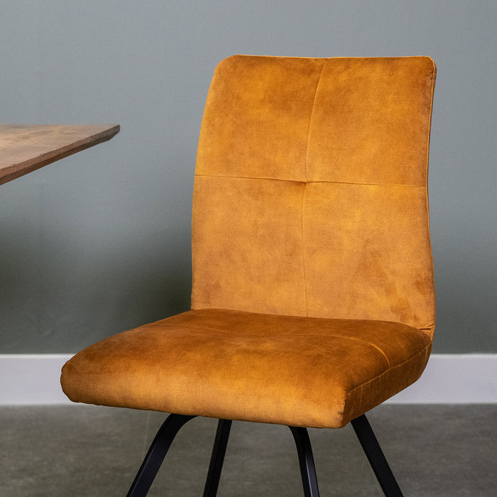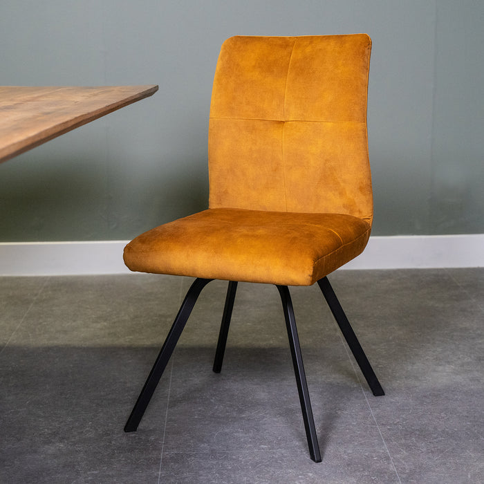 Deze zachte stoel is gemaakt van Adore, en stevige maar lekker zachte en warme stof. De stoel heeft geen armleuningen. Eetkamerstoel Jens is beschikbaar in de kleuren: Antraciet, Hunter, Oker geel en Licht blauw. De poten zijn van ijzer gemaakt en ze zijn met een zwarte finish afgewerkt.