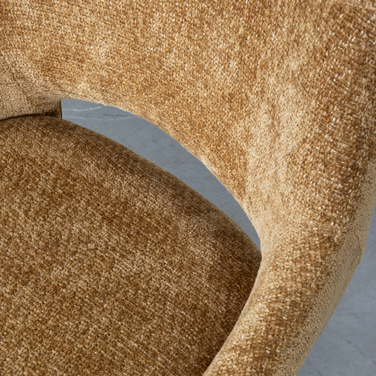 De eetkamerstoel Marlow in elite-stof combineert luxe en comfort met een minimalistische uitstraling, ideaal voor moderne en Scandinavische interieurs. De zachte elite-stof straalt verfijning uit en is perfect in balans met het strakke, metalen frame, dat zorgt voor een moderne touch.