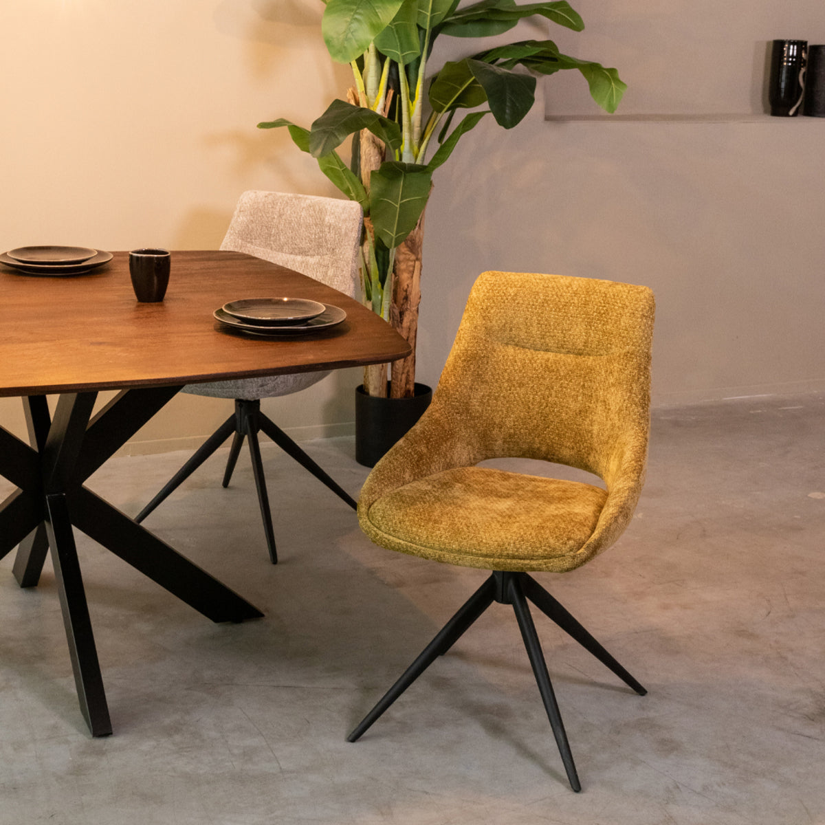 De Marlow eetkamerstoel biedt niet alleen een luxe uitstraling, maar zorgt ook voor een uitnodigende sfeer aan je eettafel. Dankzij de combinatie van hoogwaardige elite-stof en een robuust frame, past deze stoel moeiteloos bij diverse interieurstijlen. Kies voor de perfecte mix van stijl en functionaliteit met de Marlow. Ontdek hem in onze eetkamerstoelen collectie en laat je inspireren.