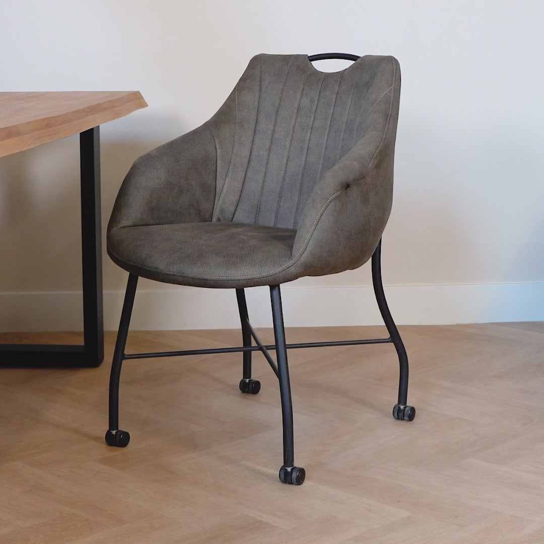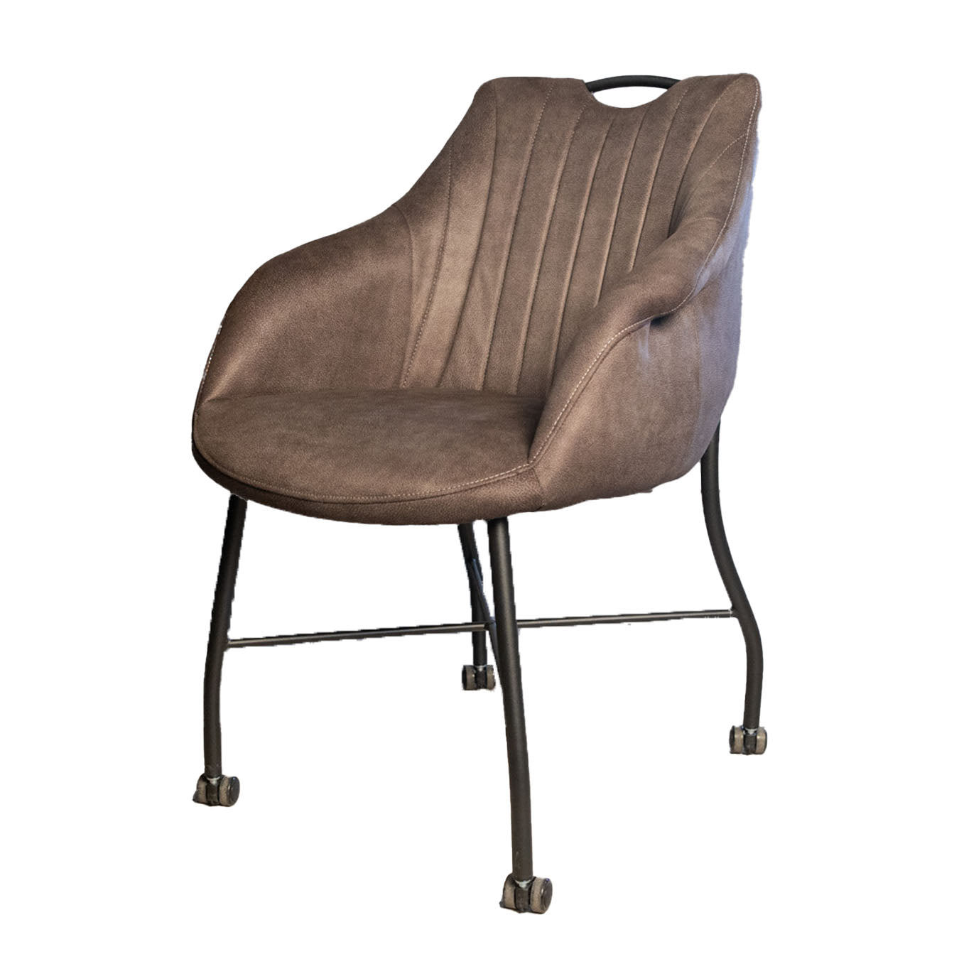 Eetkamerstoel Metric is een moderne eetkamerstoel met wieltjes in een mooie luxe microvezel uitvoering. Deze mooie eetkamerstoel heeft speciale meubel wieltjes en kan dus vrij over je vloer rollen zonder krassen te maken. Let wel altijd op met vuiligheid onder de wieltjes en in de kamer.