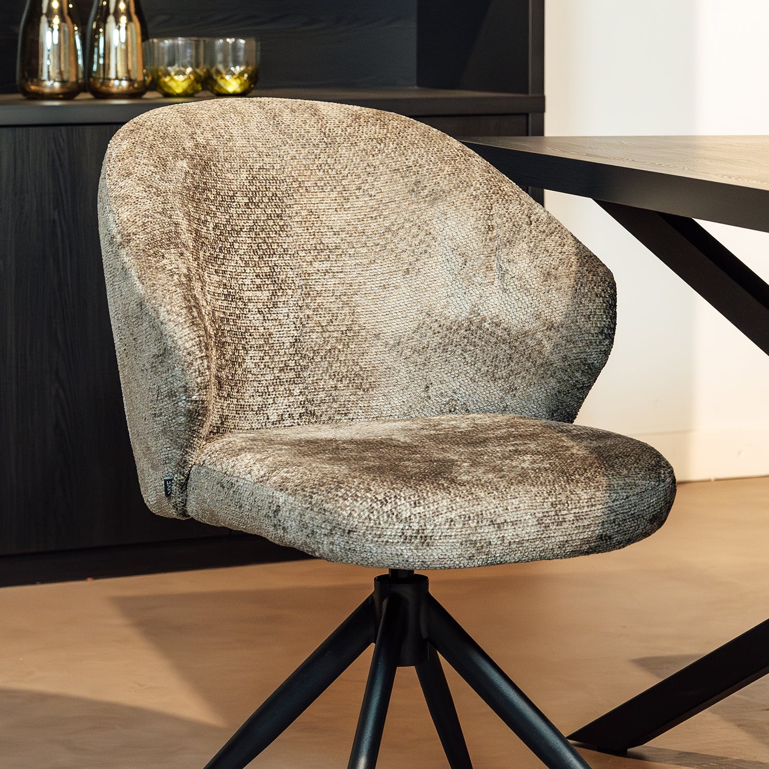 De geweven kwaliteitsstof geeft de stoel een stoere, maar toch zachte look die moeiteloos past bij diverse interieurstijlen. Of je nu extra zitplaatsen nodig hebt voor je eetkamer of een comfortabele plek om van je maaltijd te genieten, deze eetkamerstoel biedt de perfecte oplossing.