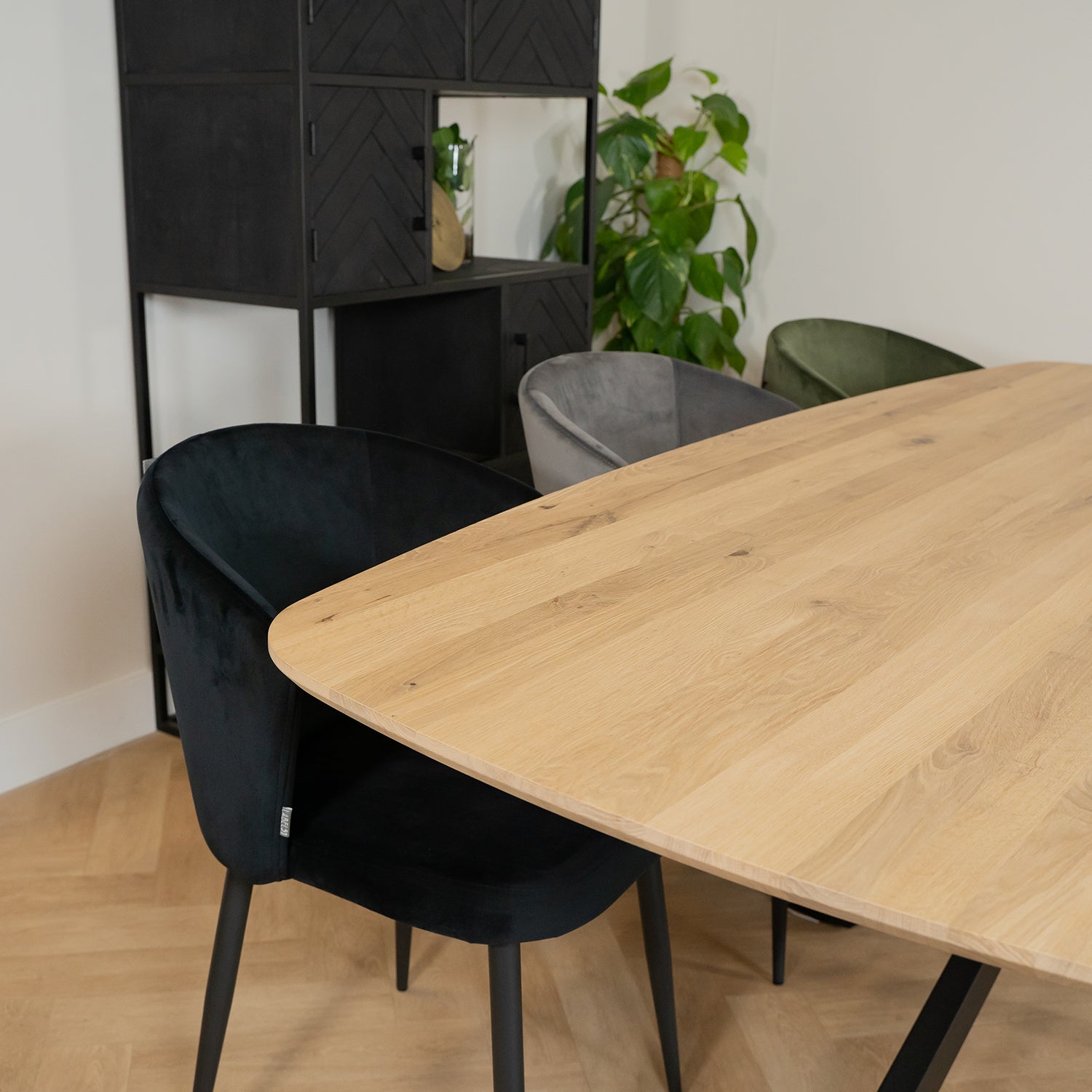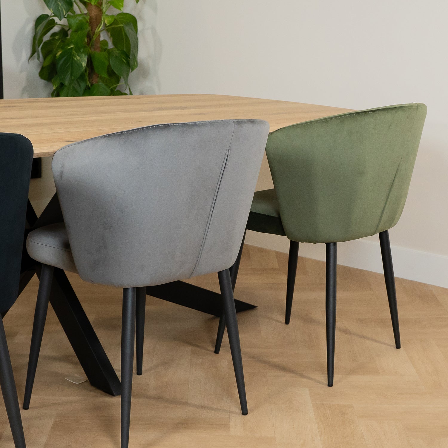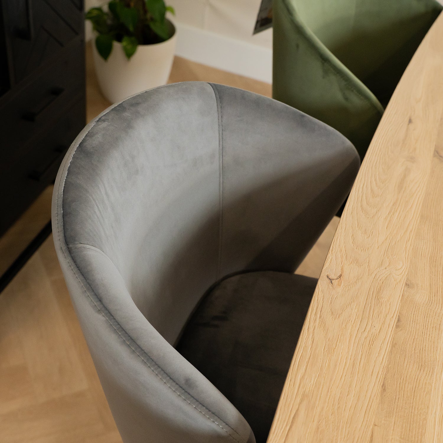 Deze charmante stoel met extreem zacht uiterlijk is een super comfortabele aanwinst voor in huis. De rugleuning vouwt zich om het zitvlak heen en schept zo een warm karakter. De metalen poten lopen licht naar buiten waardoor de stoel stevig staat.