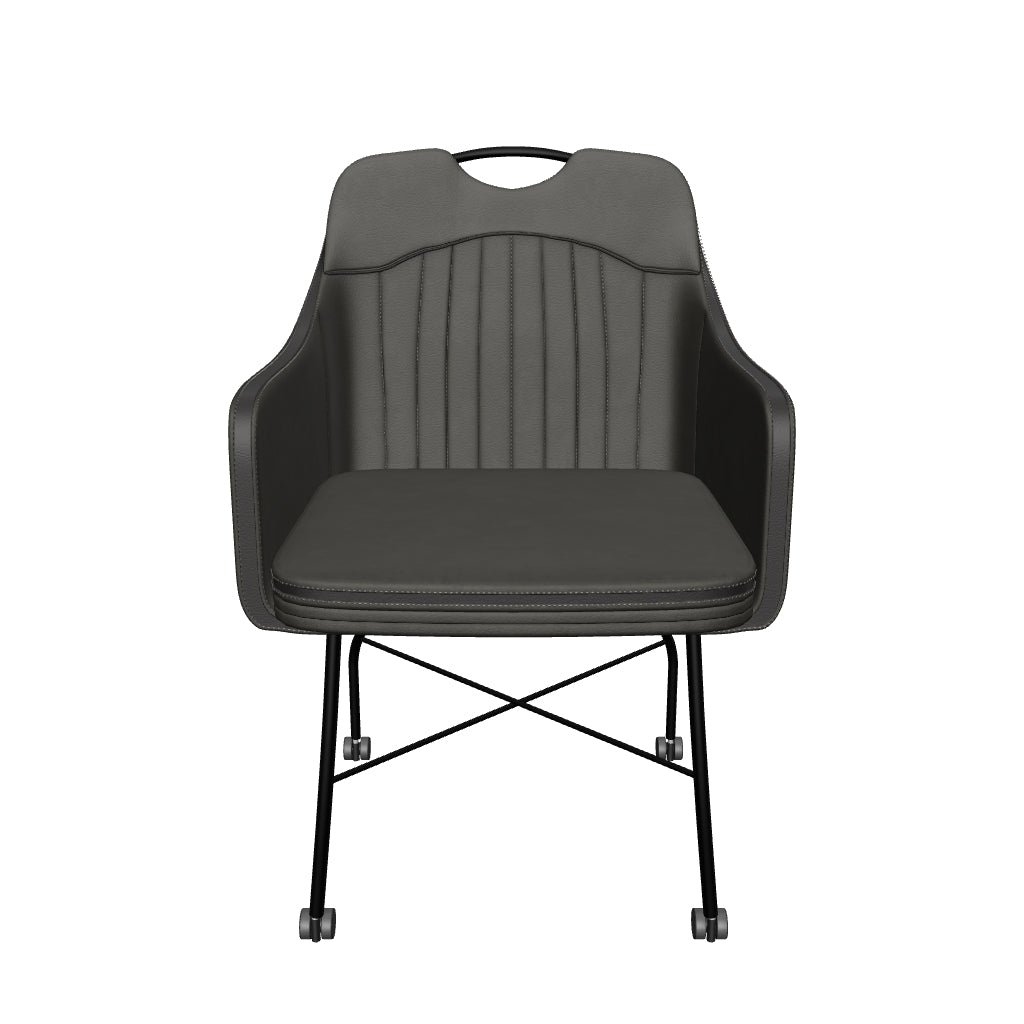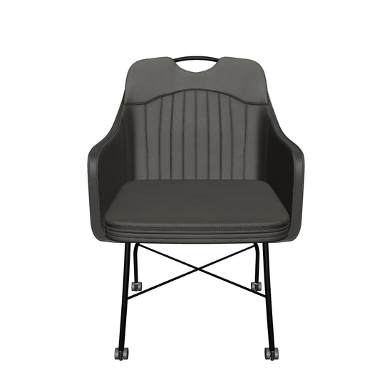 Eetkamerstoel Floria is een stoere en functionele eetkamerstoel met wieltjes en een zeer comfortabele eetkamerstoel met armleuning. De prettige zit wordt mogelijk gemaakt door de fijn gevormde zitting en de armleuningen die ervoor zorgen dat een lange avond tafelen een feestje wordt!