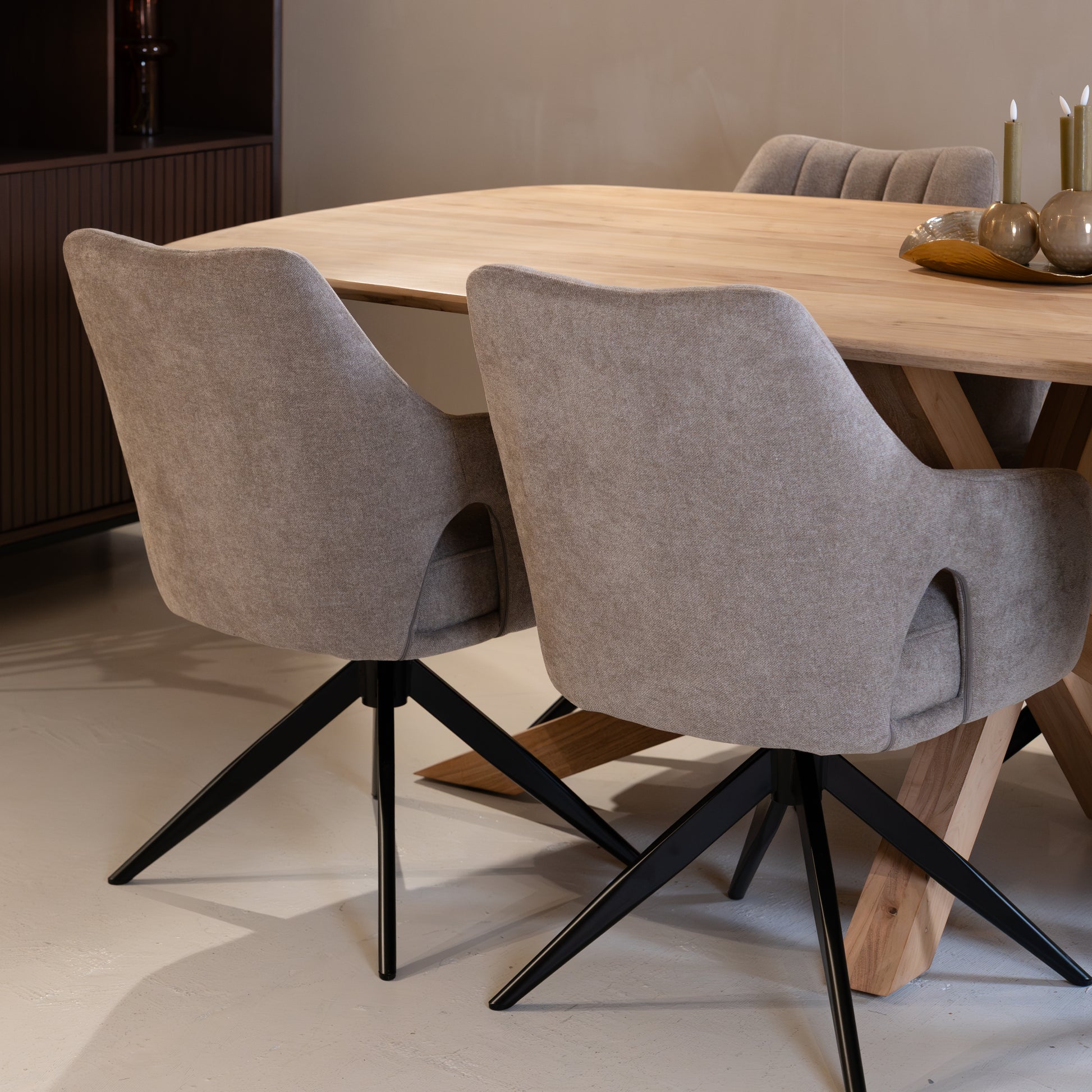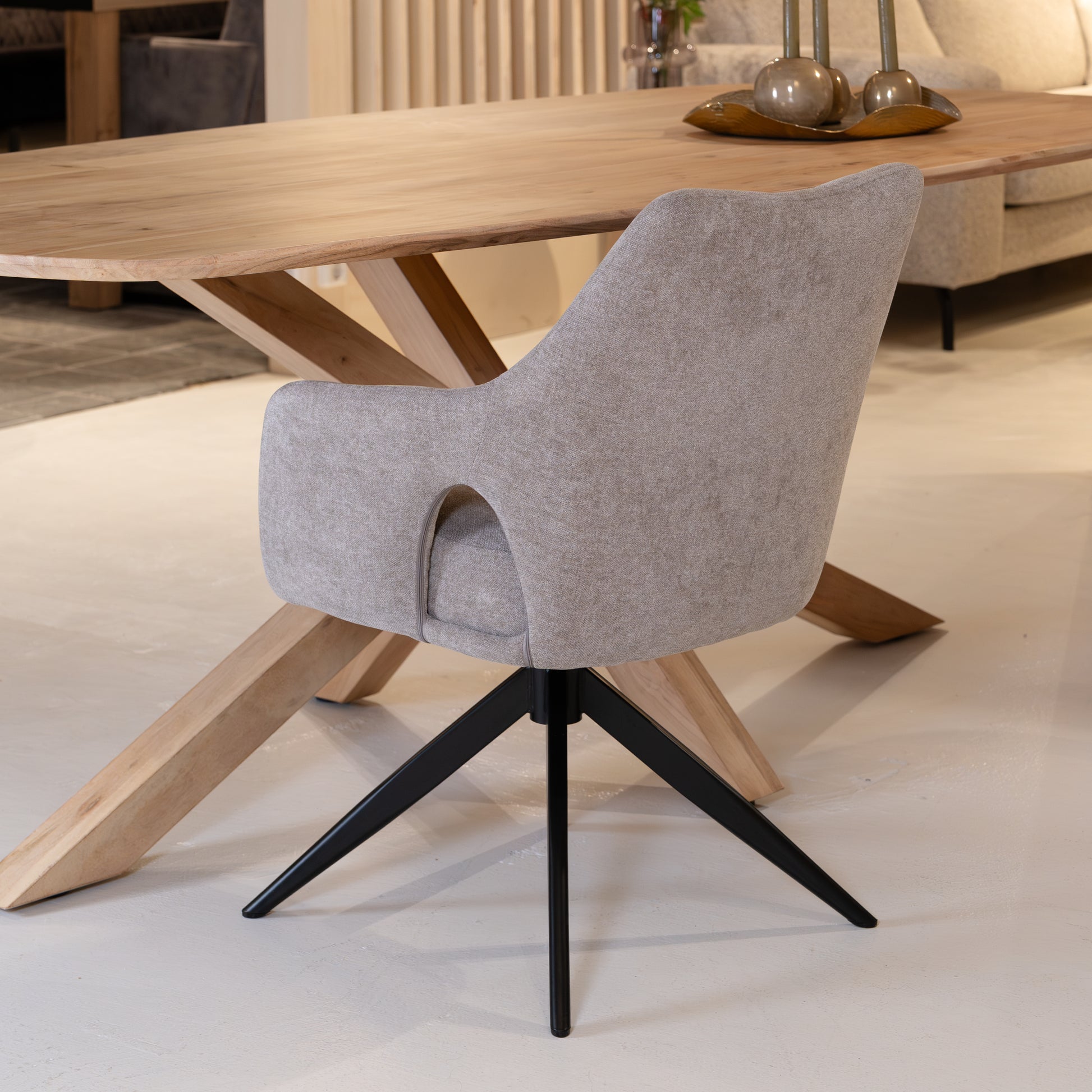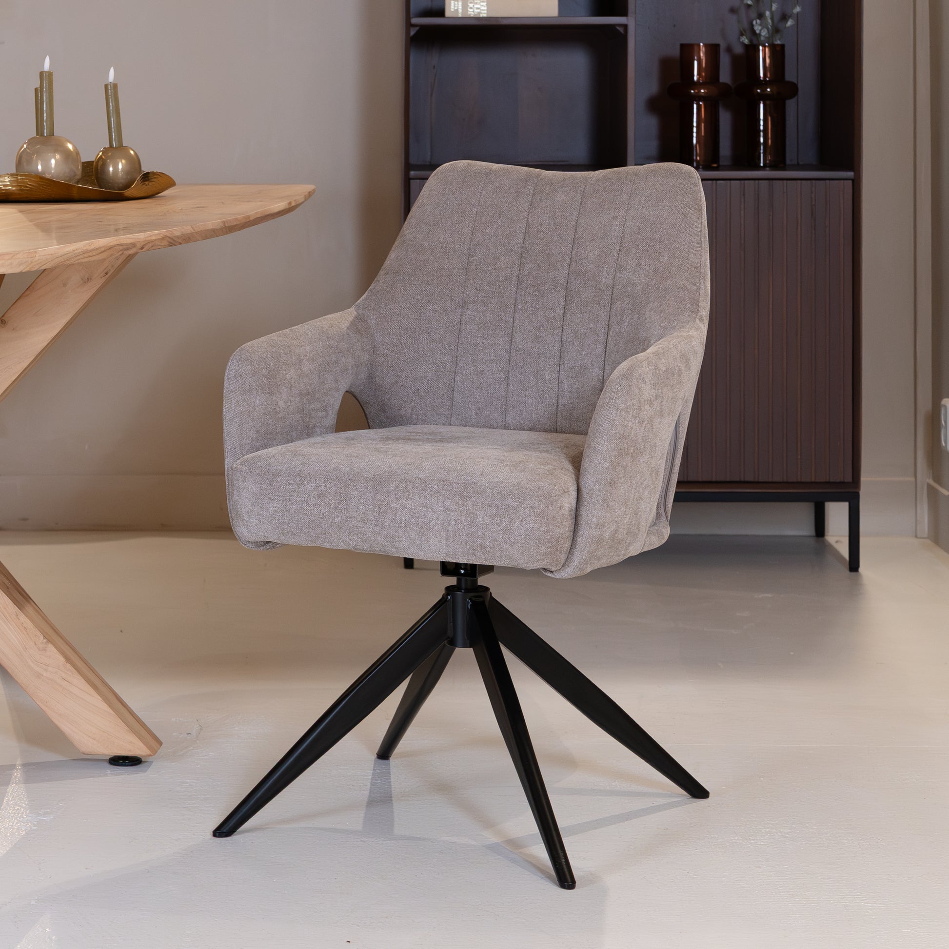 De Marley Eetkamerstoel biedt een perfecte balans tussen comfort, stijl en functionaliteit. Deze stoel, met een draaibare functie van 360 graden, is ontworpen voor een dynamische en praktische eetkamerervaring. Verkrijgbaar in de zachte stof Storm, kun je kiezen uit twee elegante kleuren: Ecru 02 en Liver 09.