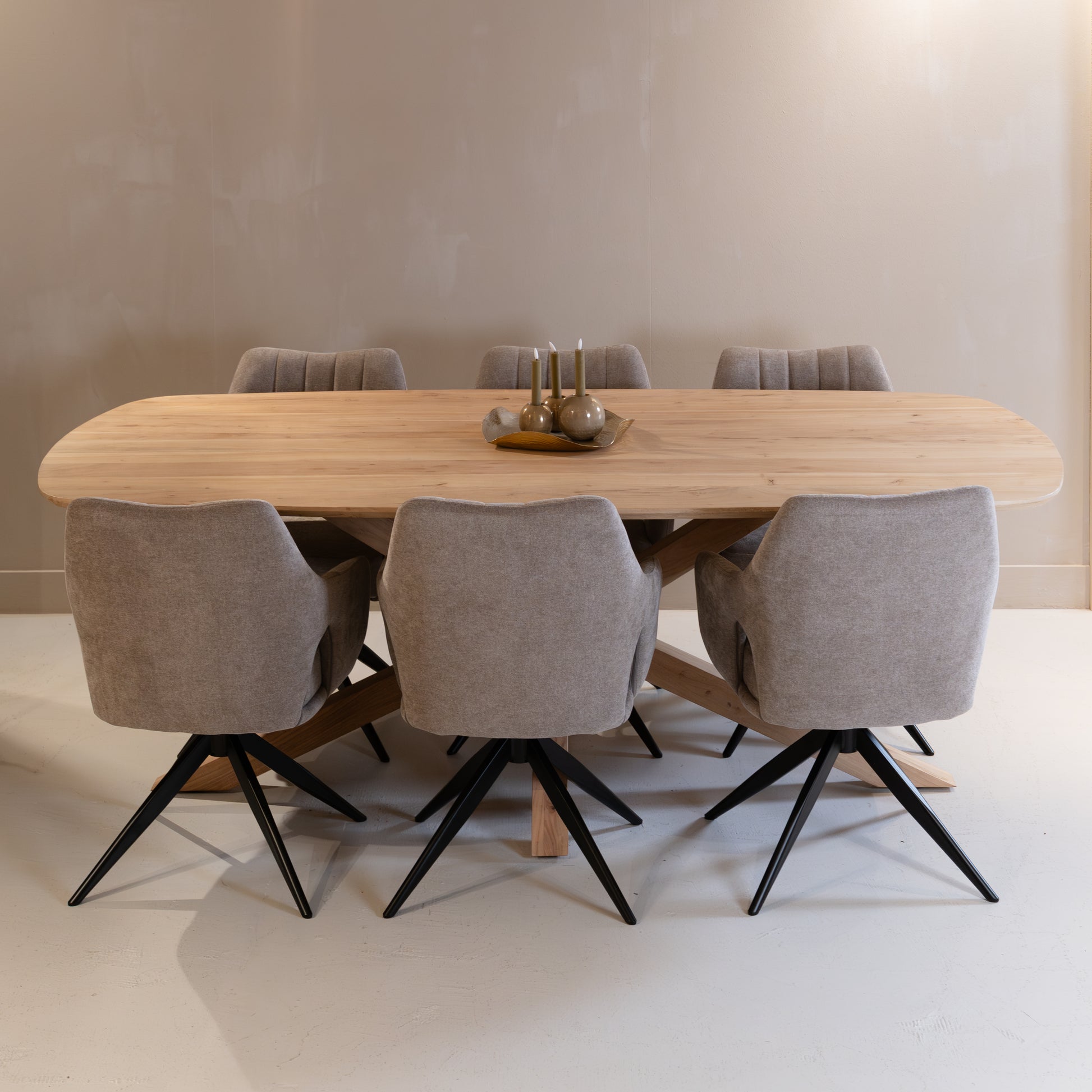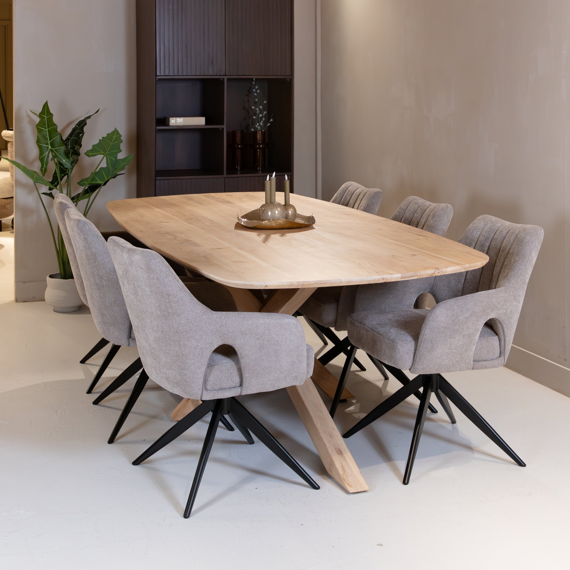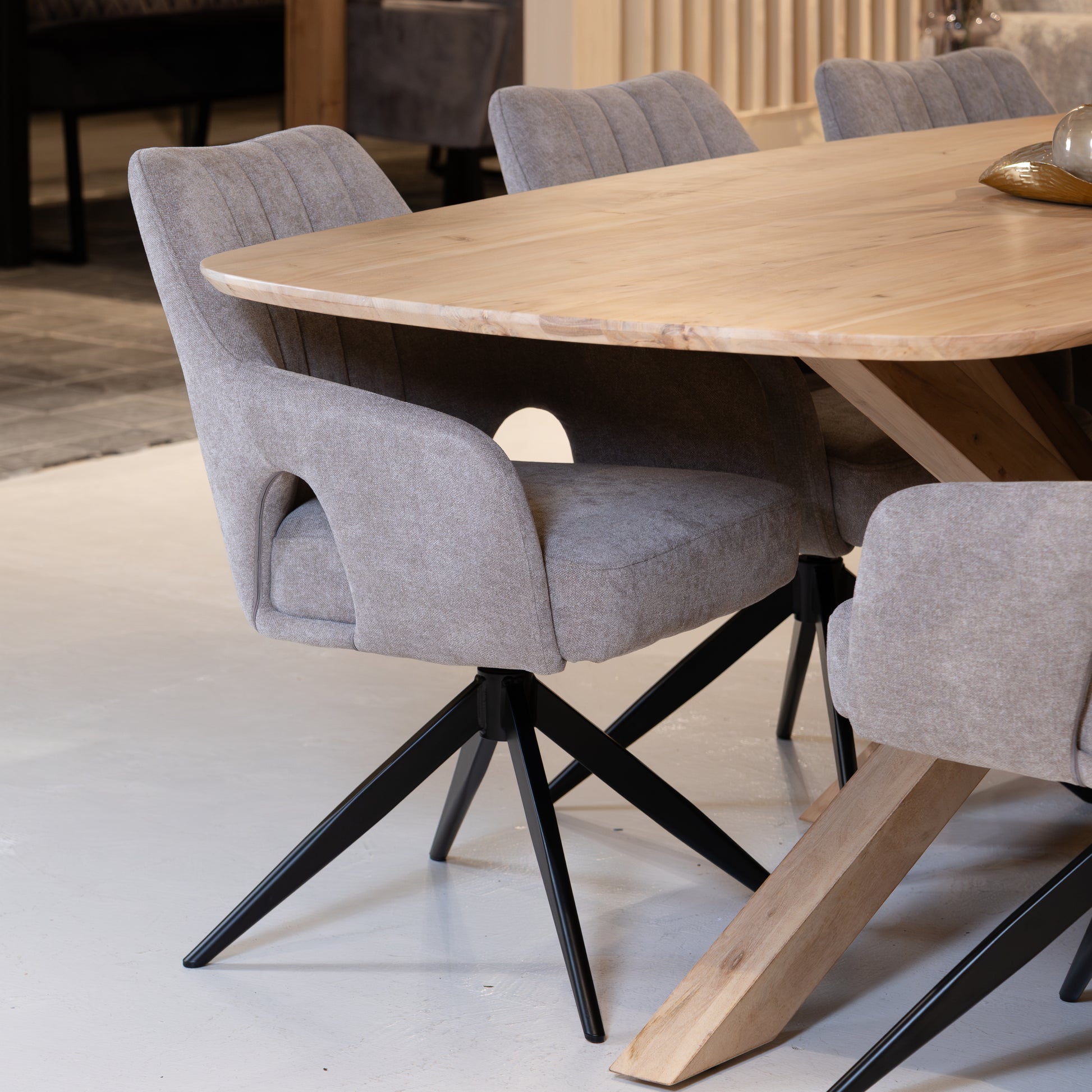 De Marley Eetkamerstoel biedt een perfecte balans tussen comfort, stijl en functionaliteit. Deze stoel, met een draaibare functie van 360 graden, is ontworpen voor een dynamische en praktische eetkamerervaring. Verkrijgbaar in de zachte stof Storm, kun je kiezen uit twee elegante kleuren: Ecru 02 en Liver 09.