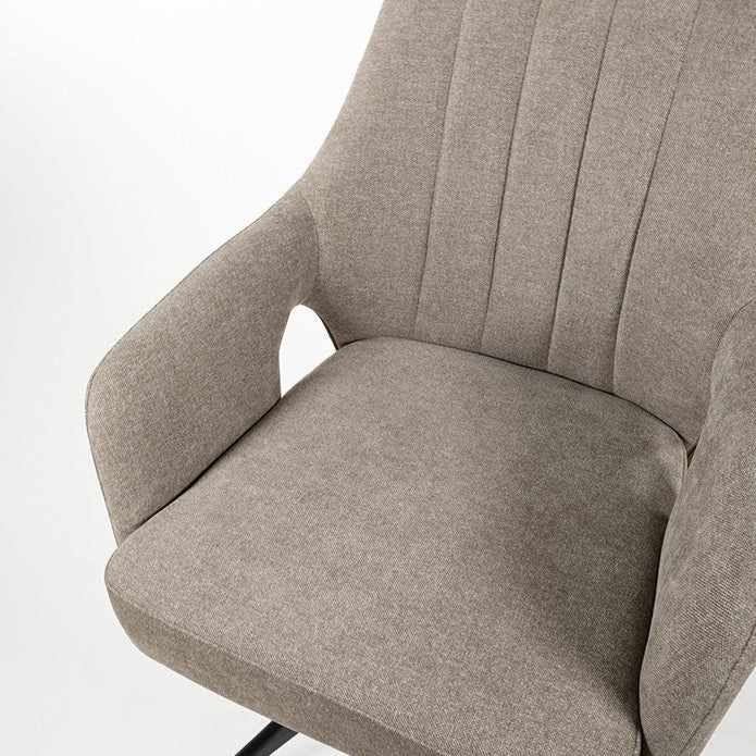 De subtiele strepen in de rugleuning zorgen voor een verfijnd patroon, terwijl de openingen bij de armleuningen bijdragen aan een luchtig en modern karakter. Dit design geeft de stoel een eigentijdse uitstraling die perfect aansluit bij diverse interieurstijlen, van modern tot Scandinavisch.