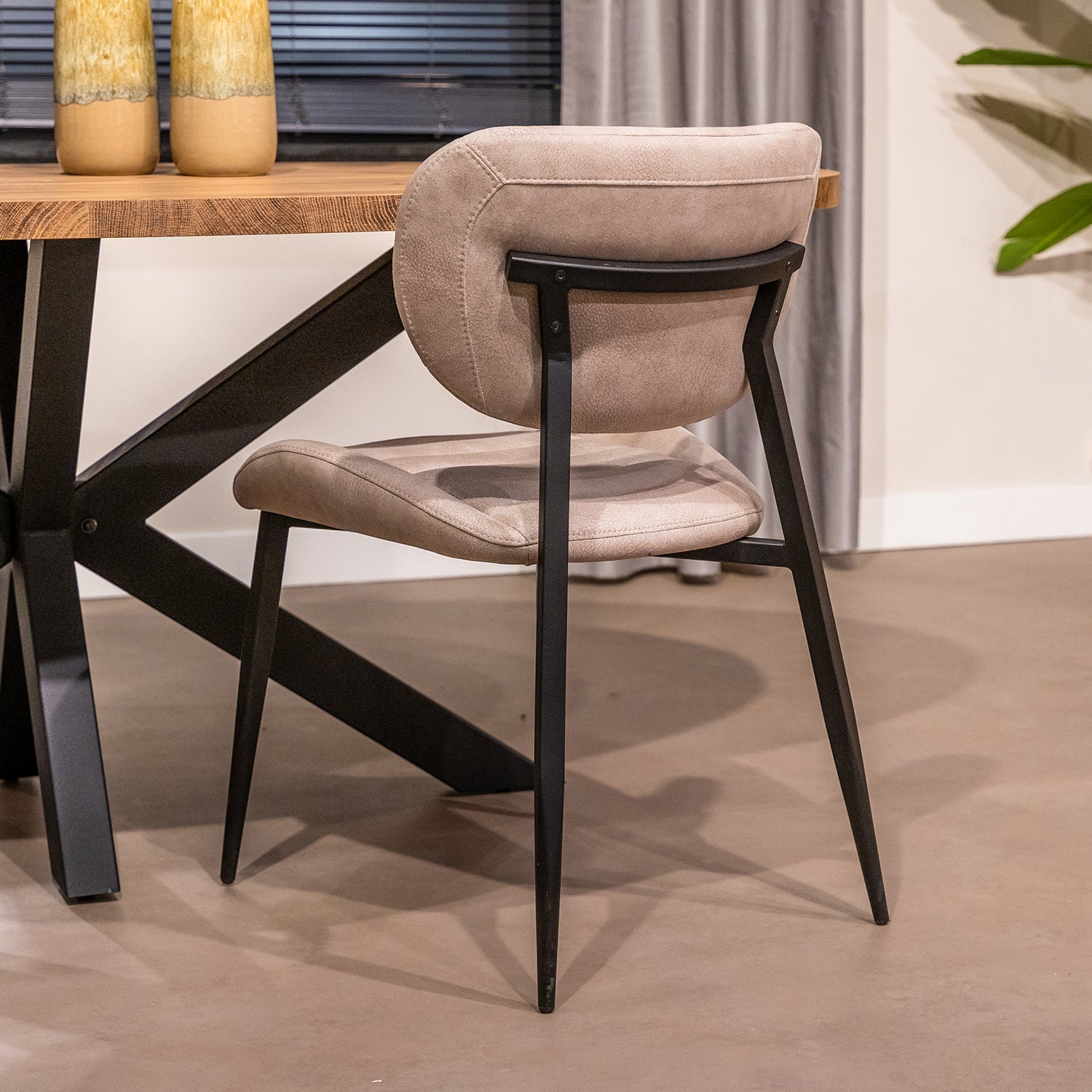 Eetkamerstoel Rikki is beschikbaar in de kleuren Microvezel Taupe, Microvezel Antraciet en Microvezel Sand. Deze kleuren zijn ook prachtig te combineren aan de eetkamertafel!