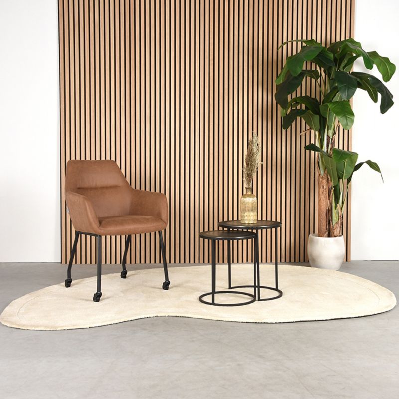 De prachtige vormen, comfortabele brede zitting en handige armleuningen zorgen voor een mooi design met maximaal zitcomfort. Daarnaast heeft de Lenny eetkamerstoel wieltjes en een handgreep aan de achterkant van de rugleuning. Deze eetkamerstoel met wieltjes is daardoor makkelijk te verplaatsen.