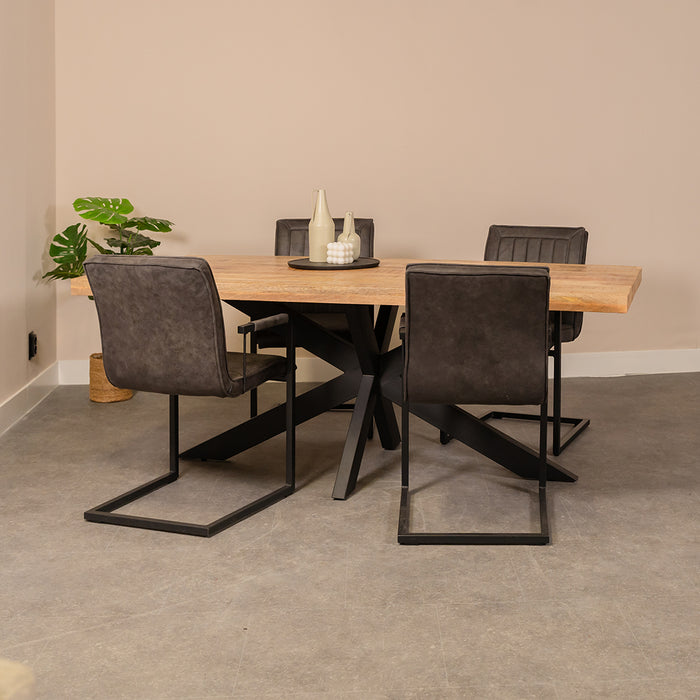 Eettafel Apollo is gemaakt van mangohout en heeft een mat zwart metalen frame. De combinatie van deze twee materialen zorgt voor een industriële uitstraling met een warme sfeer als tegenhanger.