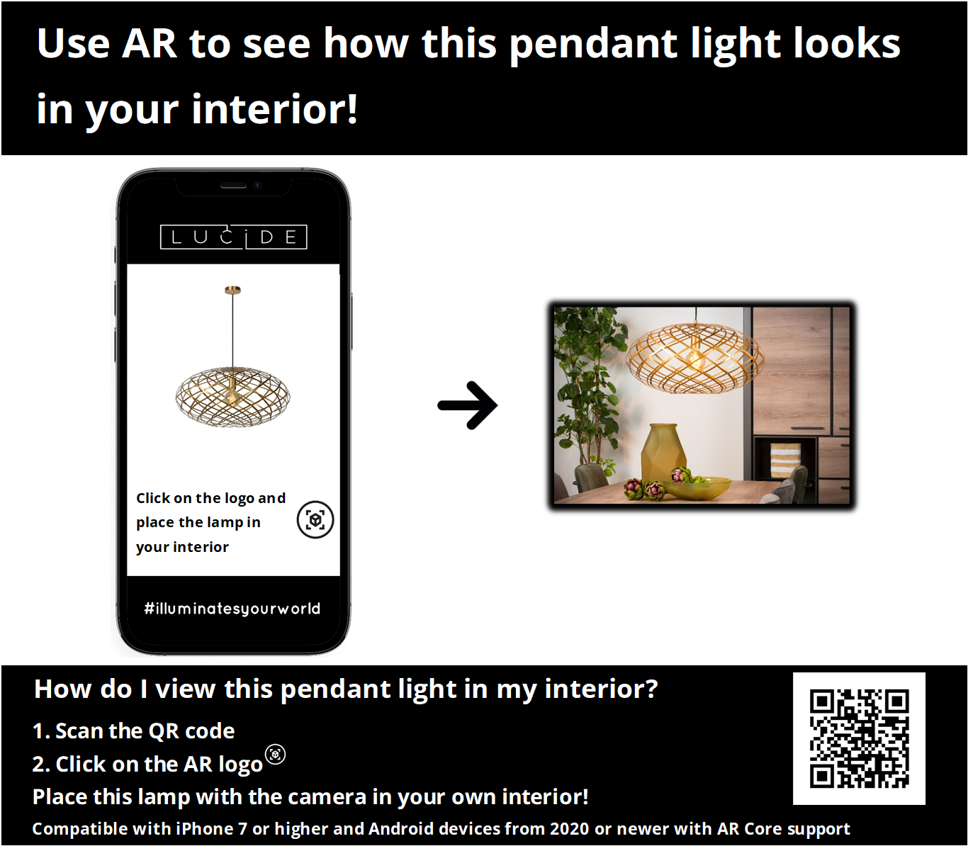 Al onze lampen worden exclusief lichtbron verkocht. Deze lamp maakt gebruik van een E27 fitting. Deze lamp kan maximaal een lichtbron van 40 watt aan. Er wordt aanbevolen een Filament Lamp van Ø12,5 cm te gebruiken.