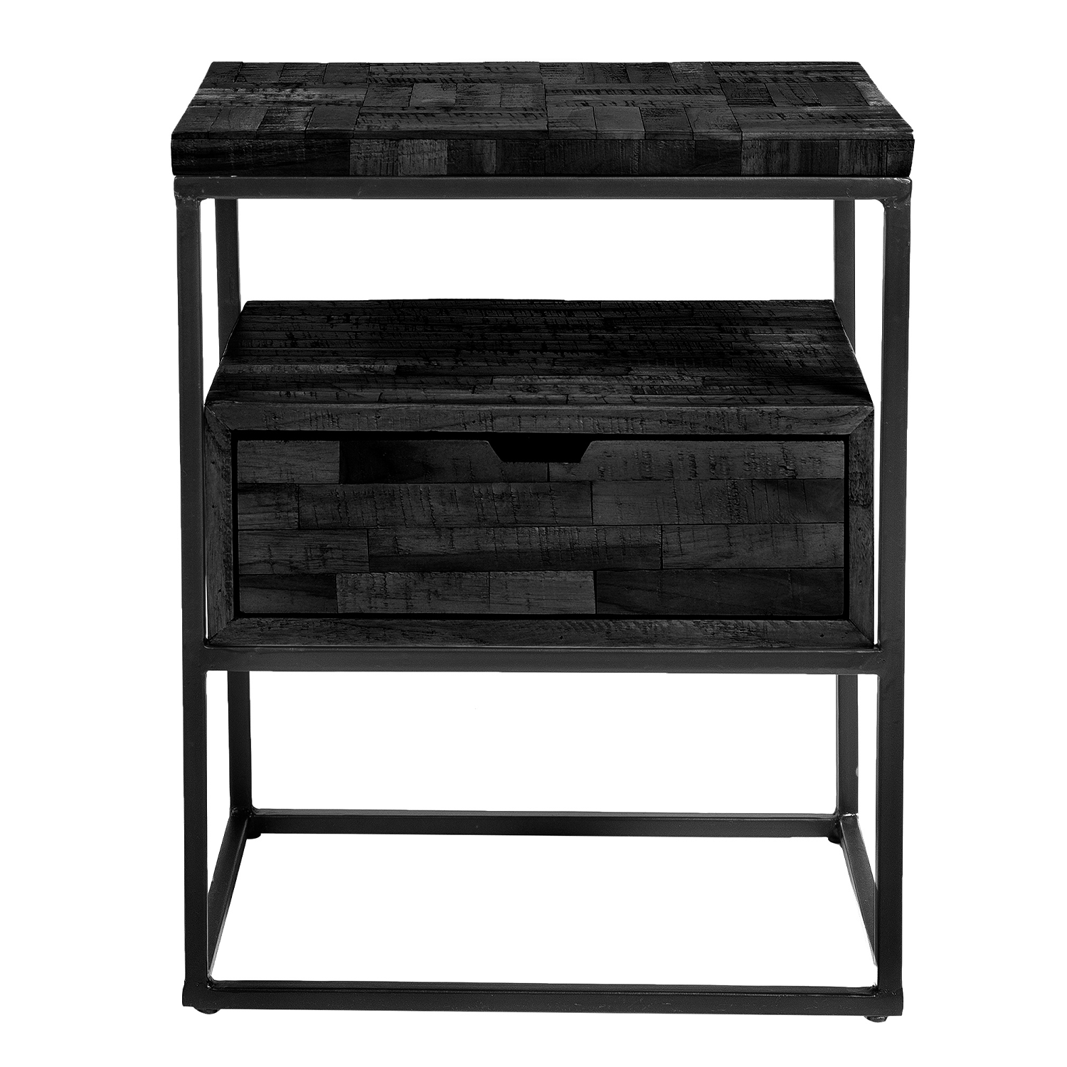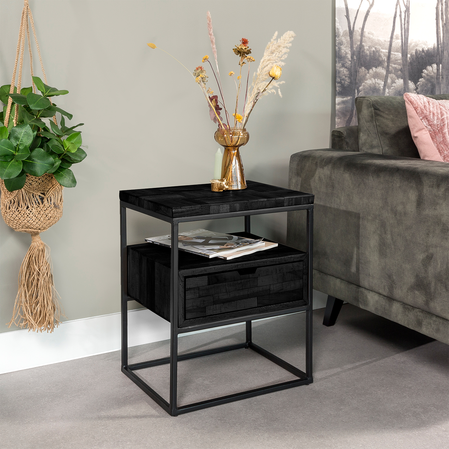 Nachtkastje Grey Block | 1 Lade | Zwart Teakhout