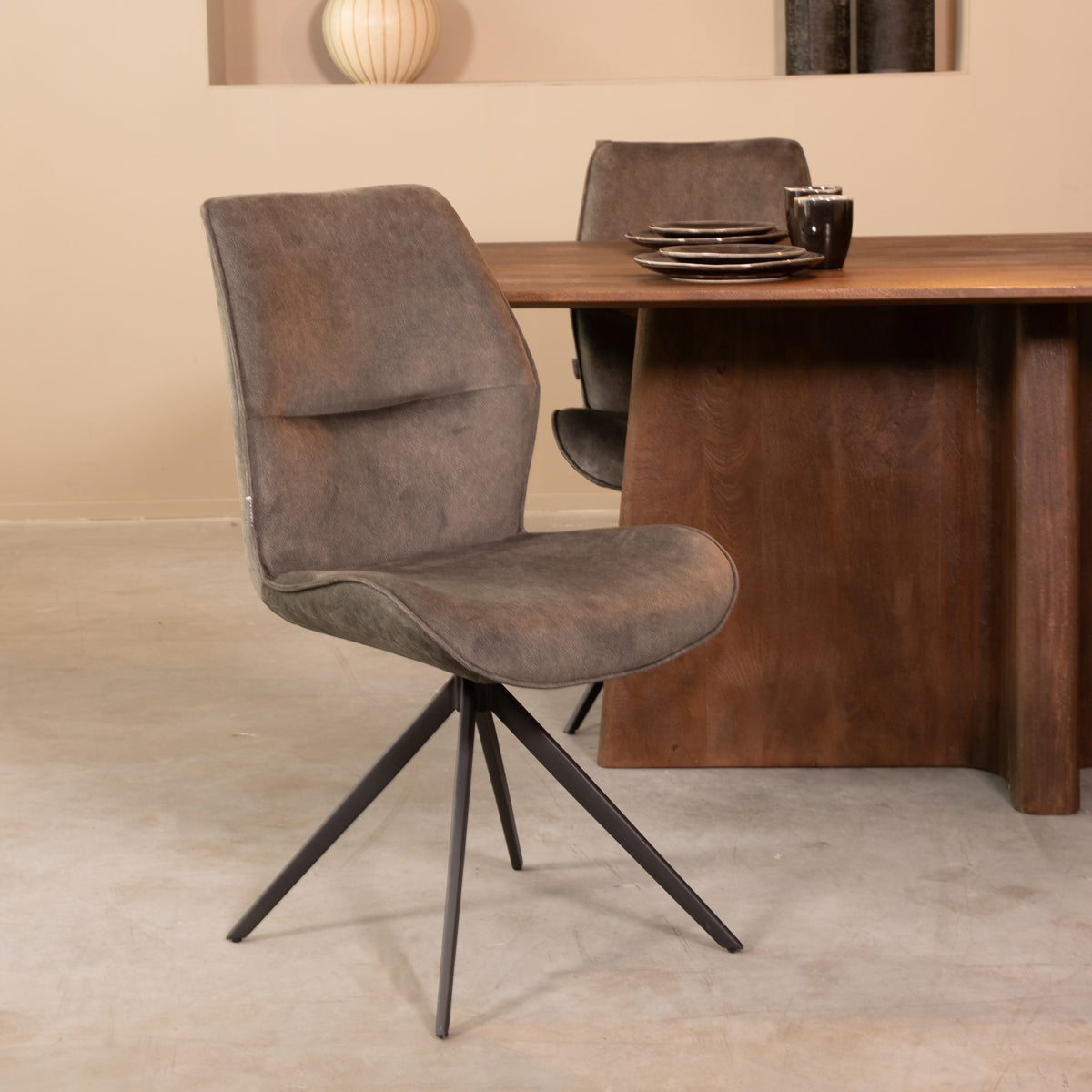 De eetkamerstoel Comfy van in microvezel is de perfecte balans tussen comfort en stijl. De zachte microvezelbekleding straalt warmte en luxe uit, terwijl het ergonomische ontwerp zorgt voor een ultieme zitervaring. Het slanke, zwart metalen frame geeft de stoel een modern industrieel karakter, ideaal voor een eigentijdse eethoek.