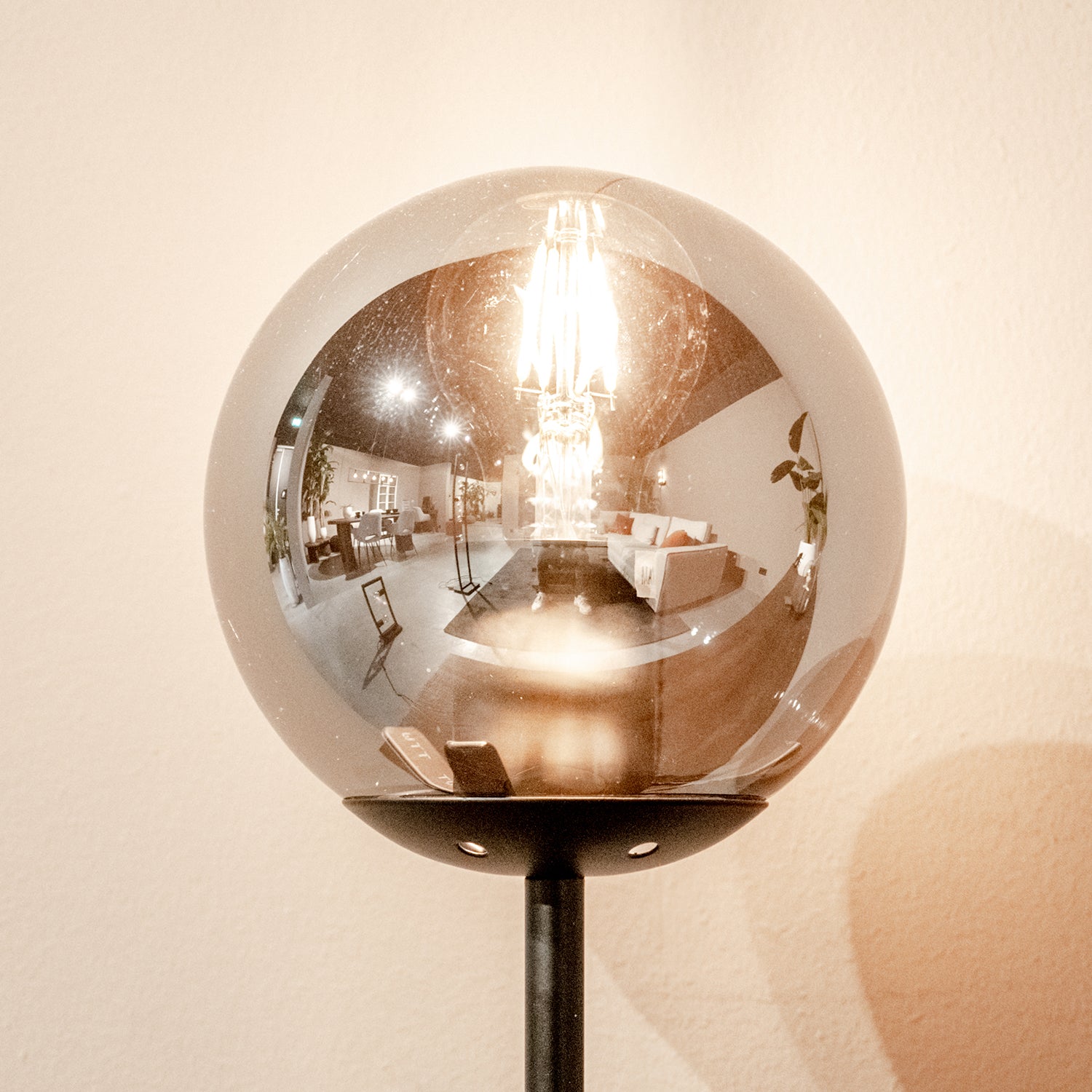 De zwarte metalen basis en standaard leiden elegant naar de ronde glazen bol, die grijs, licht spiegelend en transparant is. Met de ingebouwde dimmer op het snoer bepaal je moeiteloos de gewenste lichtsterkte. Fumo biedt eindeloze mogelijkheden voor combinaties binnen je interieur dankzij de prachtige materialen, kleuren en vormen.