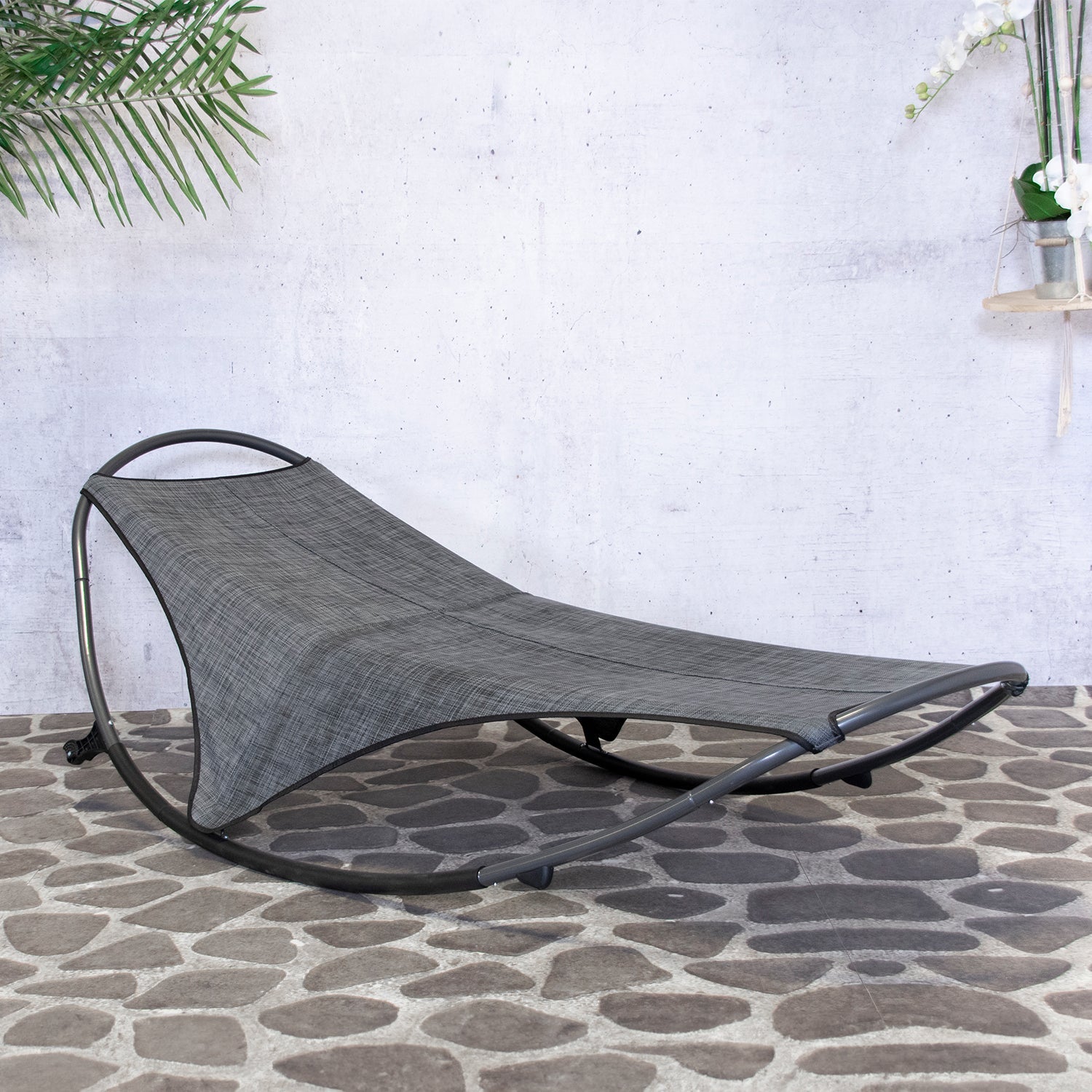 Wat dit zonnenbed echt bijzonder maakt, is het schommelende ontwerp. Laat je zachtjes wiegen door de wind terwijl je geniet van een goed boek of een verfrissend drankje.