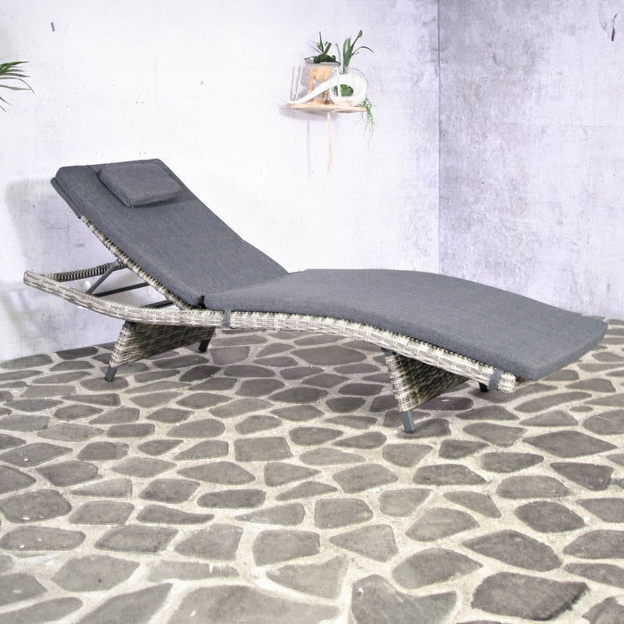 Maak kennis met ons Ligbed Rick in het Grijs. Ontworpen om je tuin of terras om te toveren tot een oase van rust, deze Tuinstoel combineert comfort en elegantie voor de ultieme lounging ervaring. De rugleuning van de tuinstoel is verstelbaar, waardoor je het eenvoudig kunt aanpassen en transformeren tot een comfortabel zonnebed.