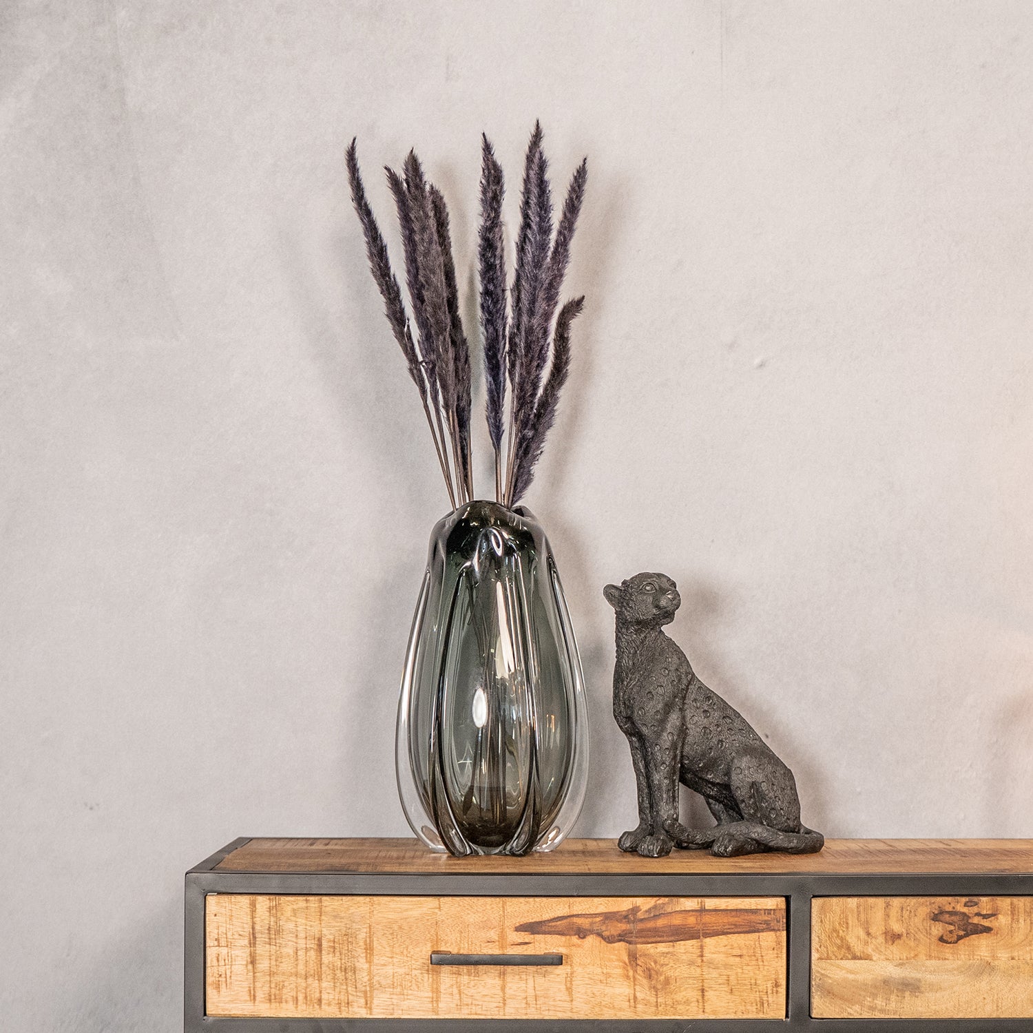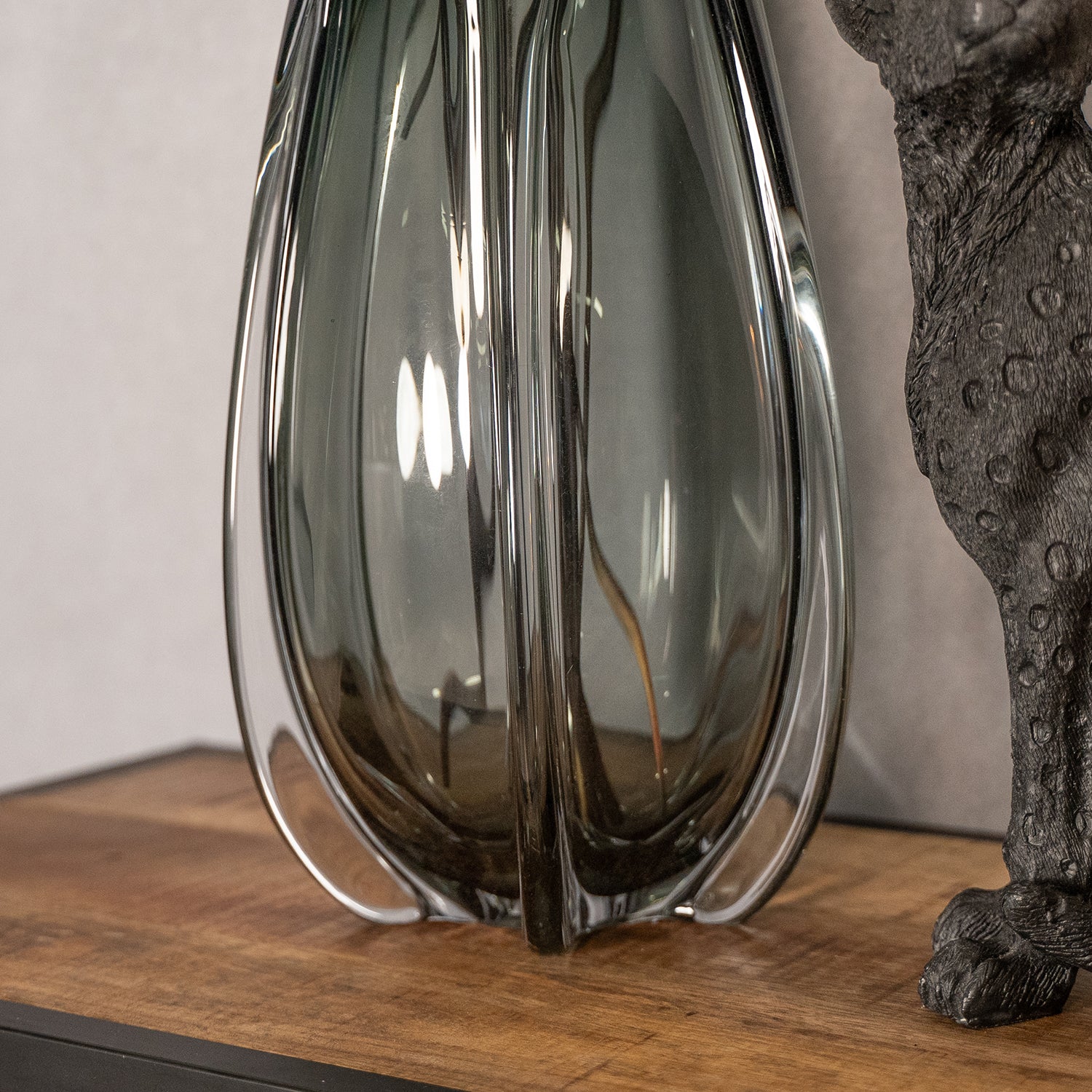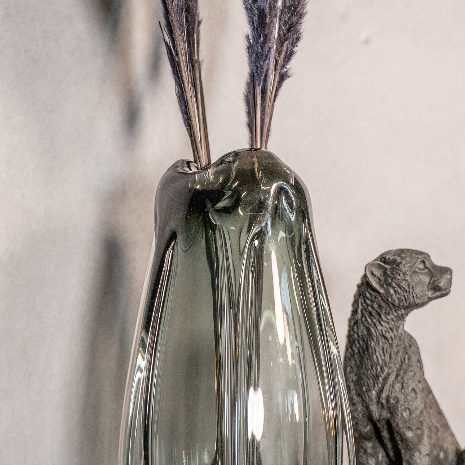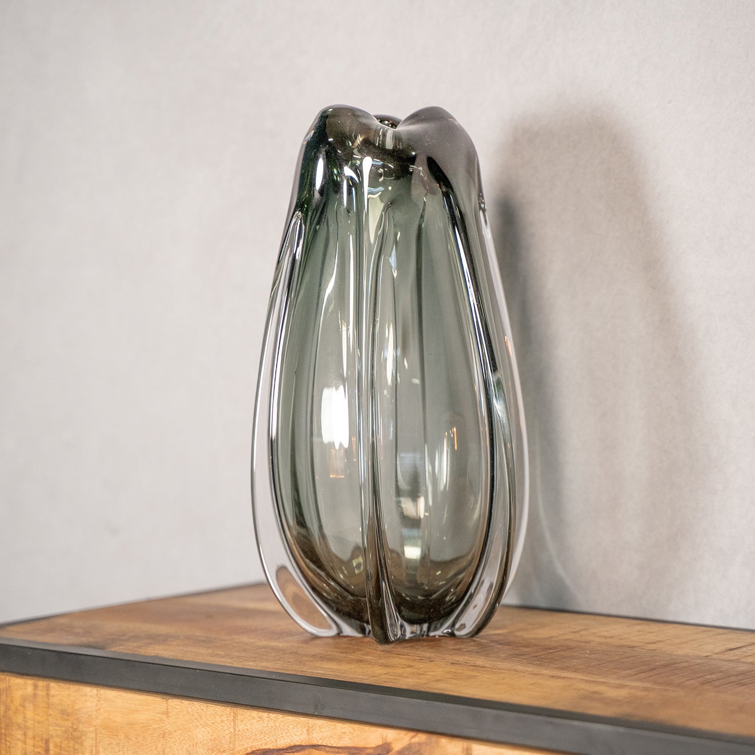 Deze vaas heeft een prachtige elegante uitstraling. Het unieke golvende design is perfect te combineren met droogbloemen en andere fleurigheid. De vaas is gemaakt van licht doorschijnend glas.