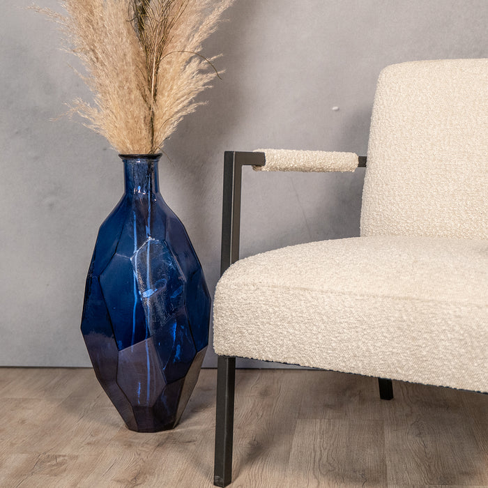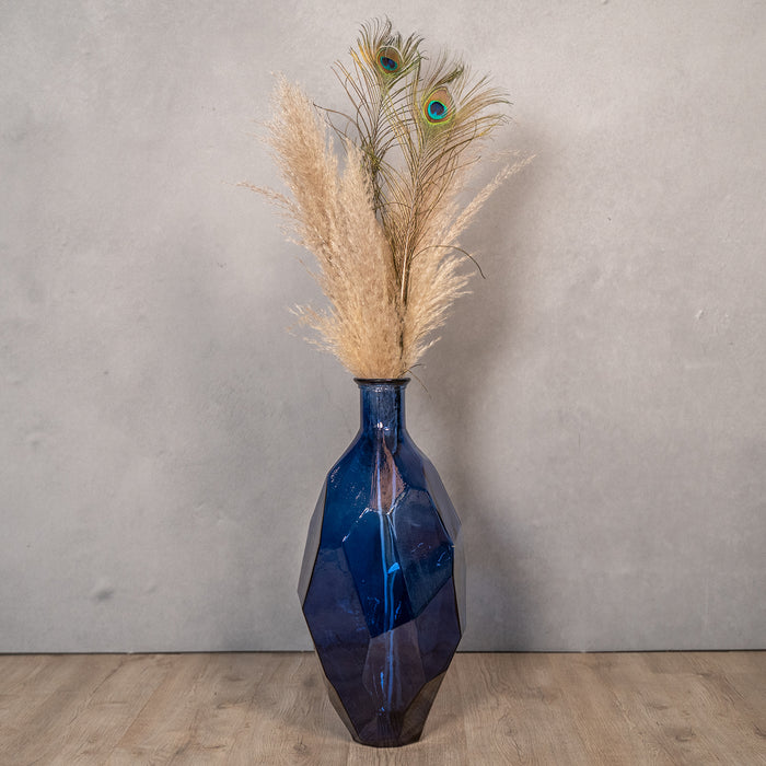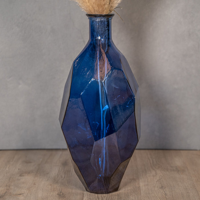 Deze diepblauwe vaas is een echte eye-catcher in jouw ruimte! Het moderne design straalt klasse en orginaliteit uit. Droogbloemen staan schitterend bij deze vaas, maar ook ander groen kan perfect. Het glas van de vaas is licht doorschijnend.