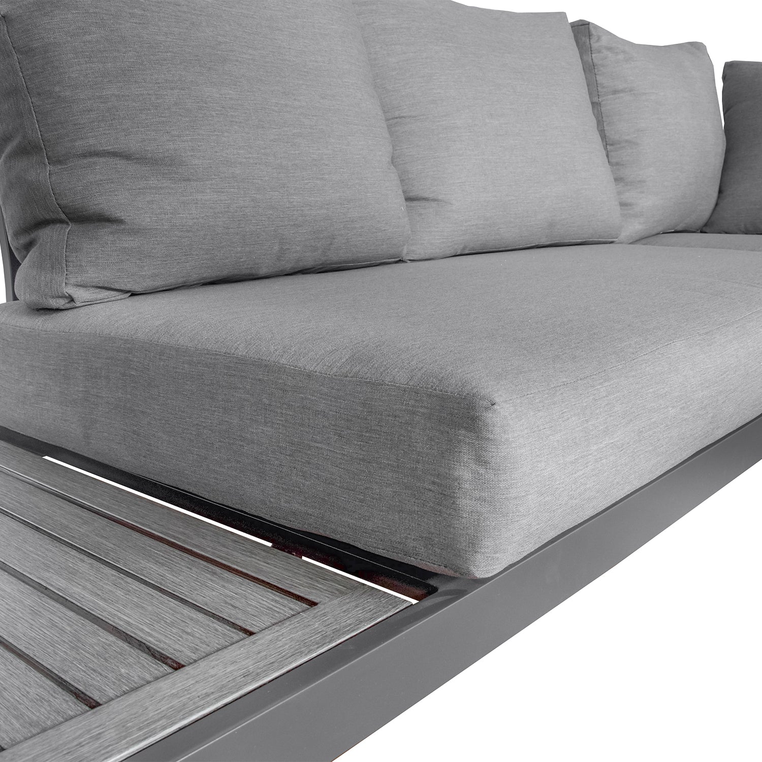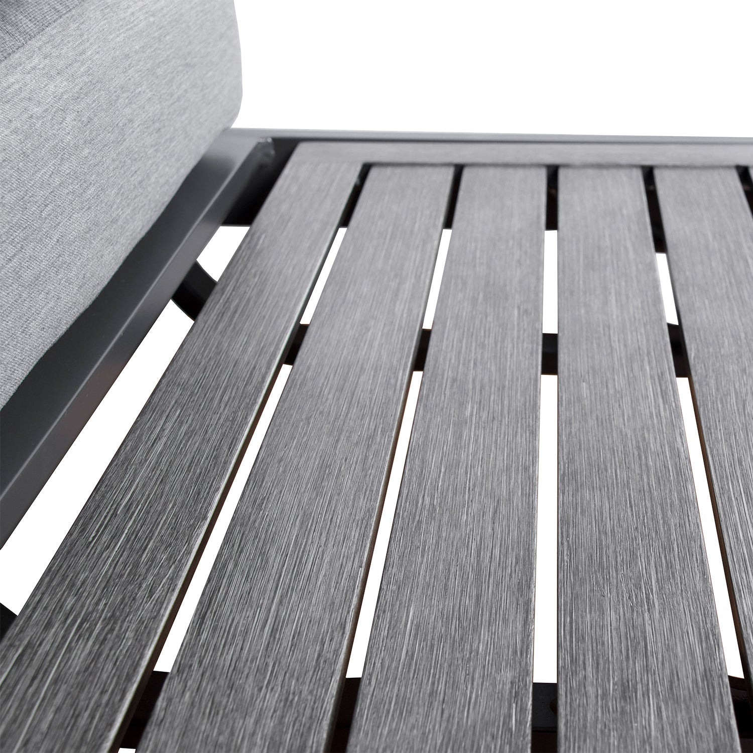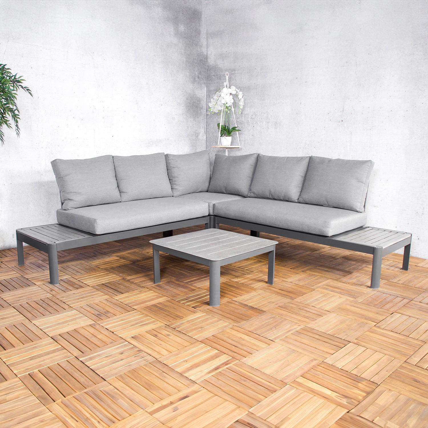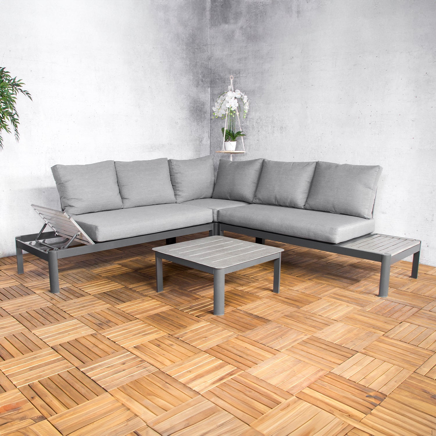 Maak kennis met onze Loungeset Leroy in Grijs. Deze set bestaat uit een bijzettafel en een luxe bank, voorzien van extra tafelblad aan de zijkant van de bank waar je je spullen op kan zetten. Of je nu wilt relaxen met een goed boek of genieten van een verfrissend drankje, deze tuinbank zorgt voor ultiem comfort terwijl je geniet van de frisse buitenlucht met je Loungeset lounge. De bank kan aan één kant omhoog worden gebracht, waardoor je eenvoudig een comfortabele ligbank kunt creëren.