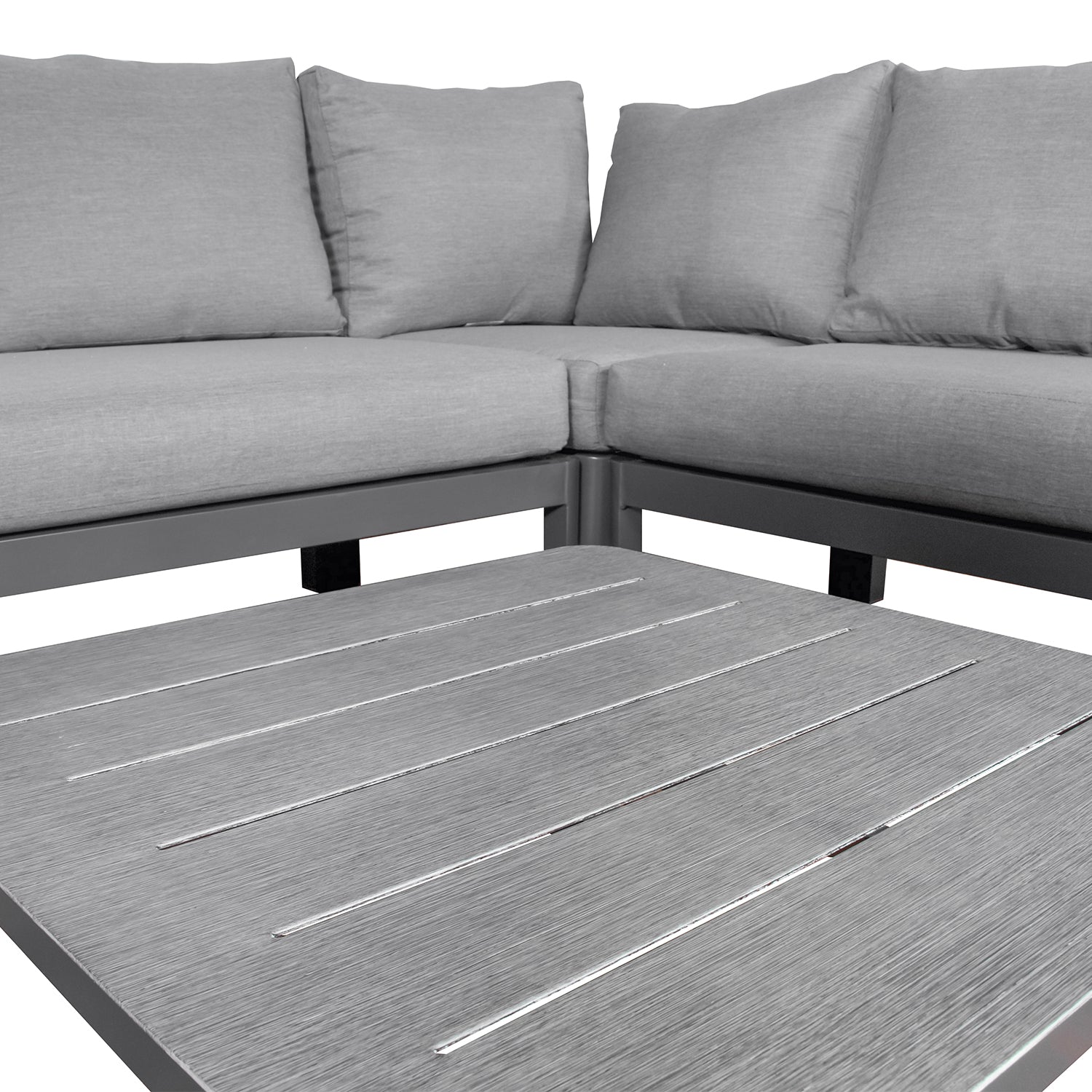 De afmetingen van de bank is 250x250x76 cm en de bijzettafel is 72x72x33 cm.