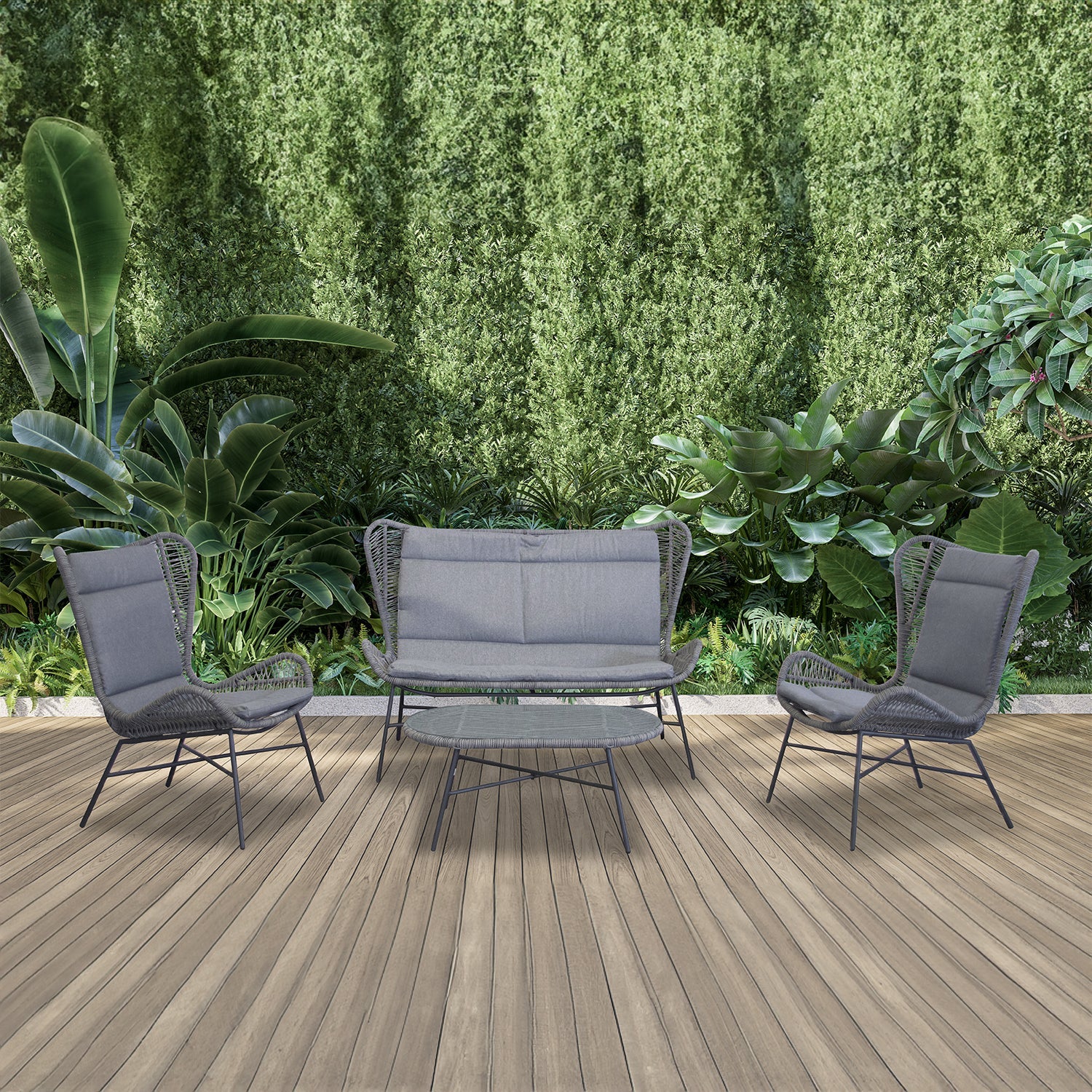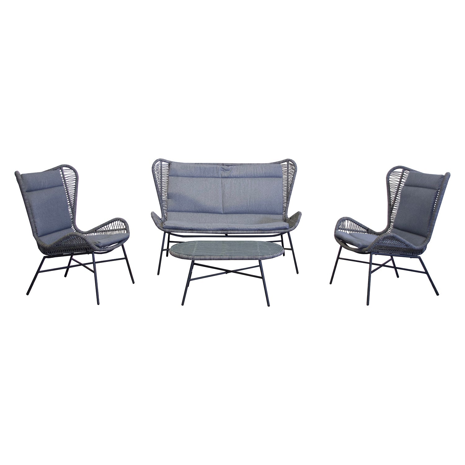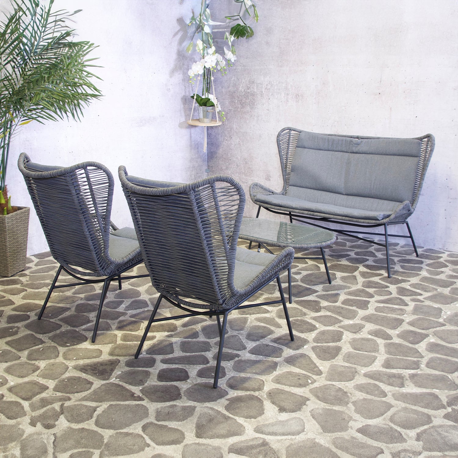 Maak kennis met onze Loungeset Rome in Grijs. Onze Loungeset biedt de perfecte combinatie van comfort en stijl voor ontspannen momenten in je buitenruimte. Deze set bestaat uit een bijzettafel, twee luxe tuinstoelen en een tuinbank, elk voorzien van zachte kussens voor een heerlijke zitervaring. Of je nu wilt relaxen met een goed boek of genieten van een verfrissend drankje, deze stoelen zorgen voor ultiem comfort terwijl je geniet van de frisse buitenlucht met je Loungeset lounge.