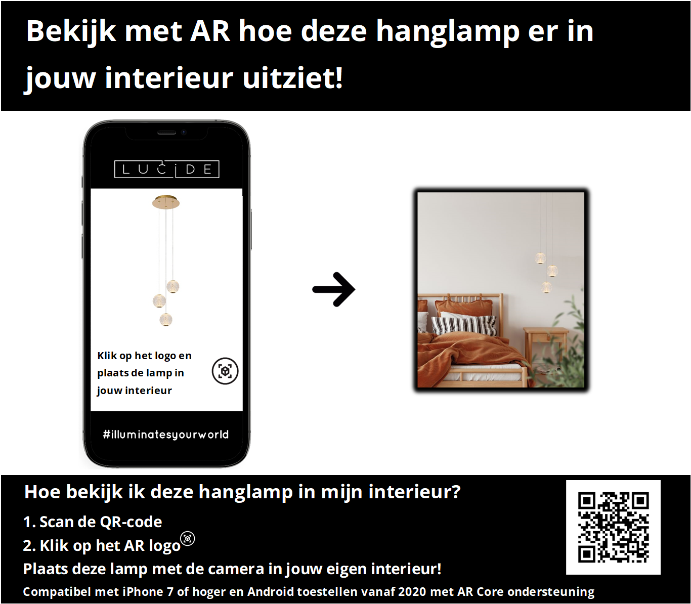 De kabels hangen uit een messing bevestigingsplaat van 25 x 25 x 3,6 centimeter. Geniet van de geïntegreerde dimbare LED-lampen met warm wit licht (2700K). Met de glazen hanglamp haal je niet alleen een verlichtingsoplossing in huis, maar ook een statement van elegantie en stijl.