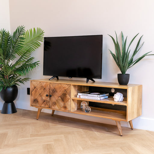 Of je nu gaat voor een tv kast mangohout zwart of een klassieke natuurlijke afwerking, een tv meubel van mangohout is een echte eyecatcher en voegt warmte en sfeer toe aan elk interieur.