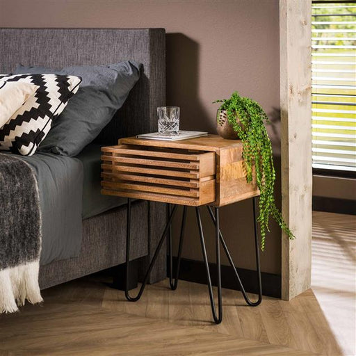 • Nachtkastje Tweak | Rond | 1 Lade | Zandkleur Massief Mango