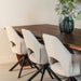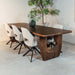 - Massief houten tafelblad: Het tafelblad is vervaardigd van hoogwaardig hout met een prachtige natuurlijke nerfstructuur. De warme tint van het hout voegt een vleugje gezelligheid toe aan uw interieur.