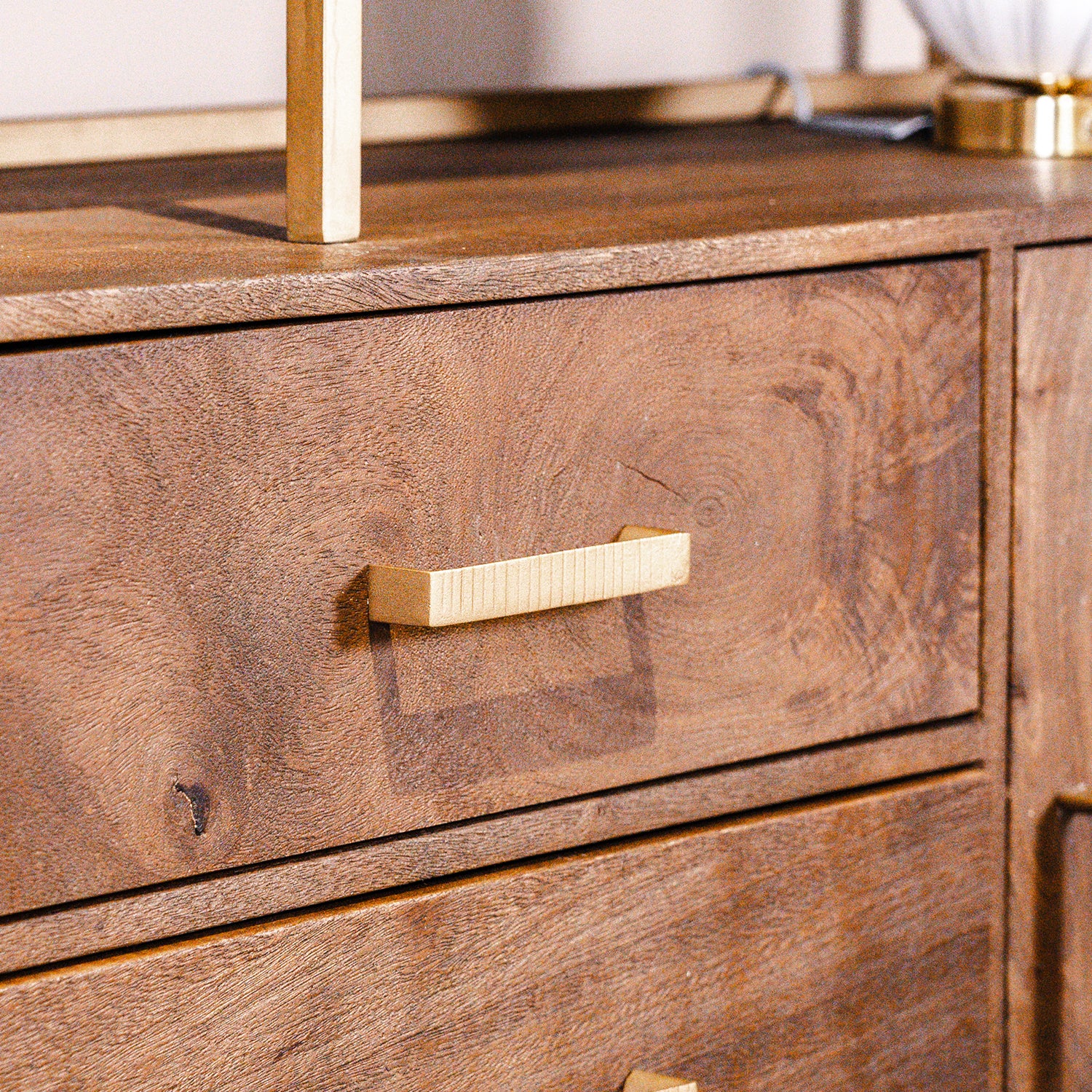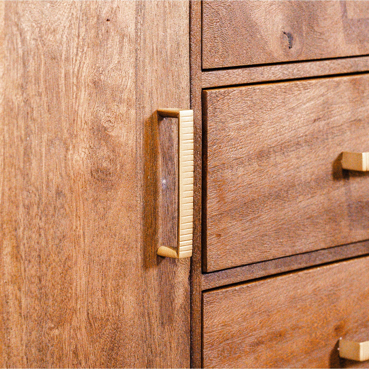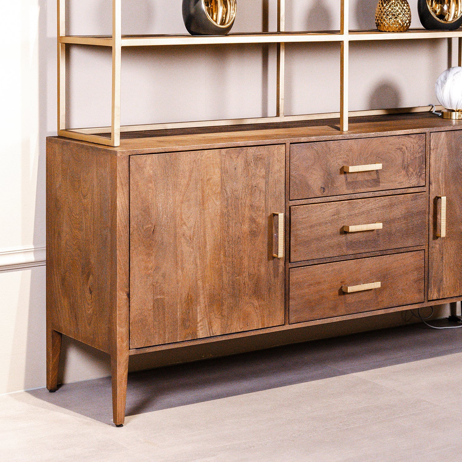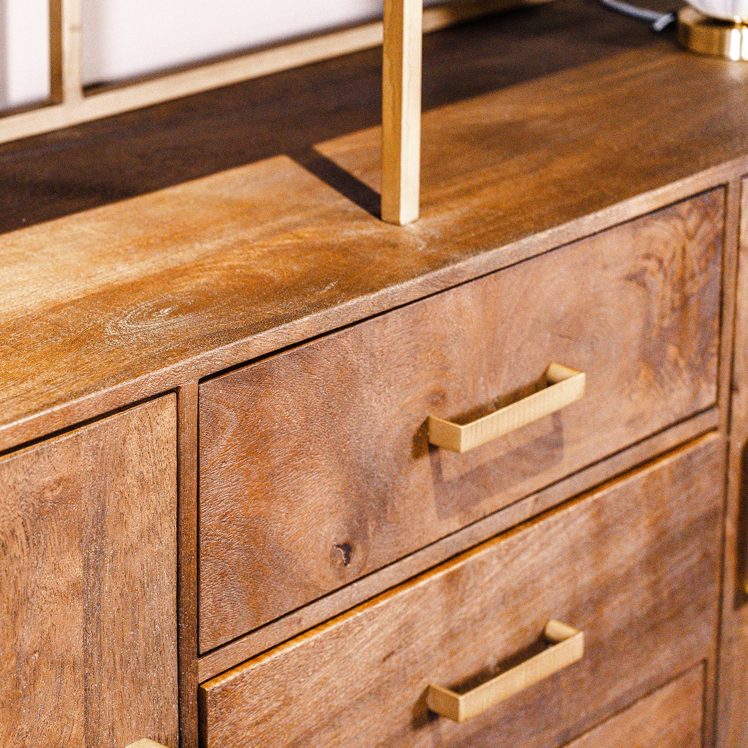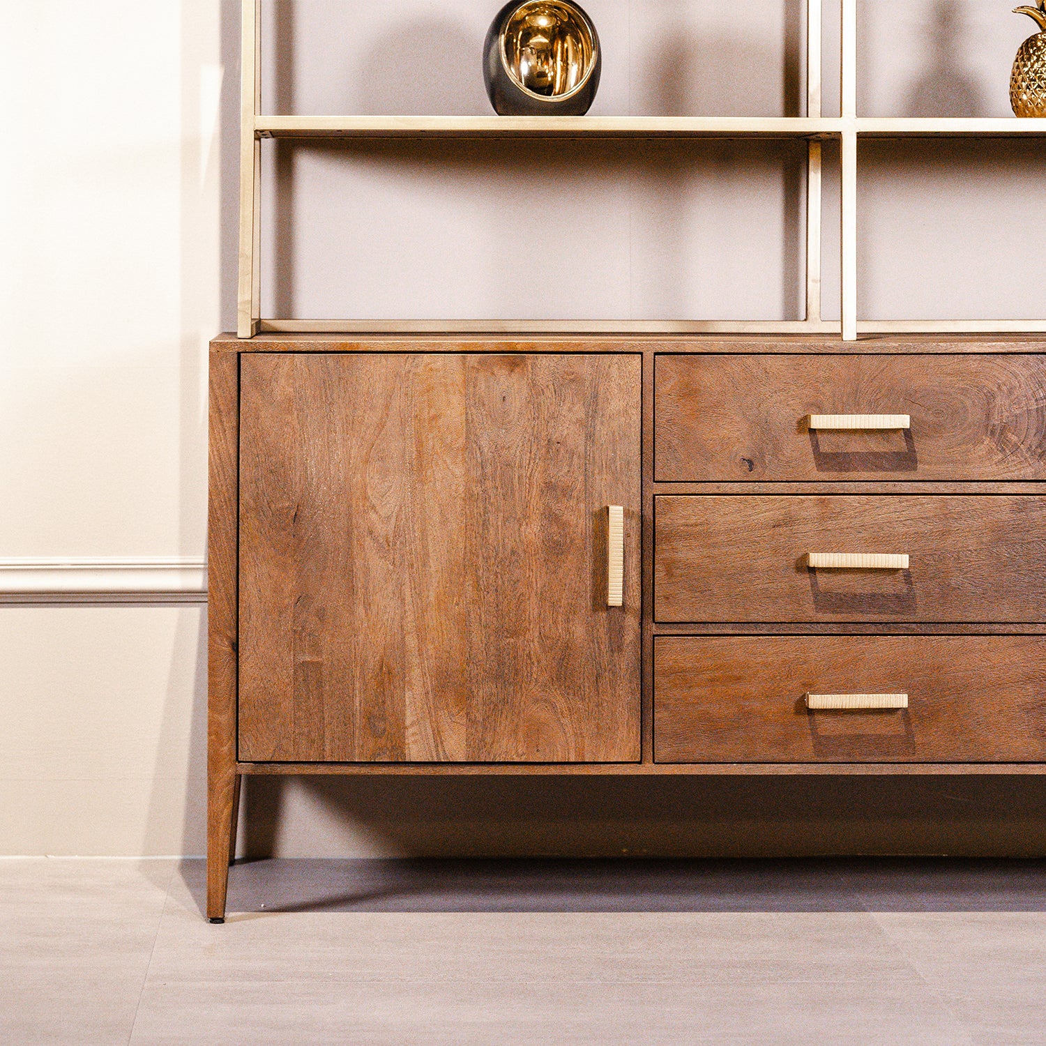 Het mangohout met hogere schuine afgewerkte poot geeft deze kast een eigentijdse uitstraling. Perfect voor het organiseren van jouw boekencollectie, decoratieve items, of zelfs je geliefde planten.