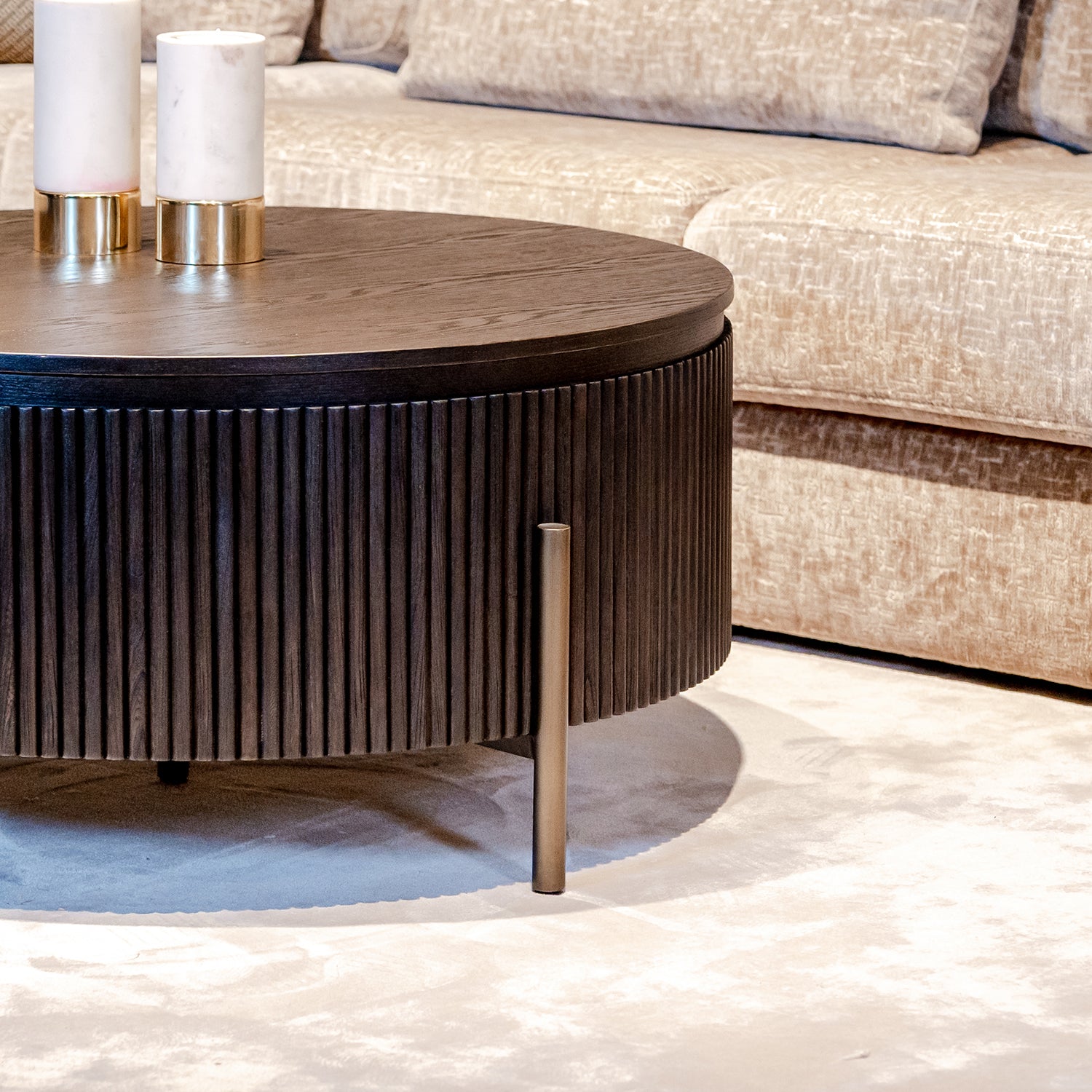 De ronde salontafel heeft een ronde vorm, waardoor hij perfect in elke ruimte past. Met een uitnodigend tafelblad biedt hij voldoende ruimte voor je kopje koffie, boeken of decoraties. Of je nu met vrienden, familie, buren of zelfs vreemden bent, deze tafel creëert de perfecte sfeer voor gedenkwaardige momenten.