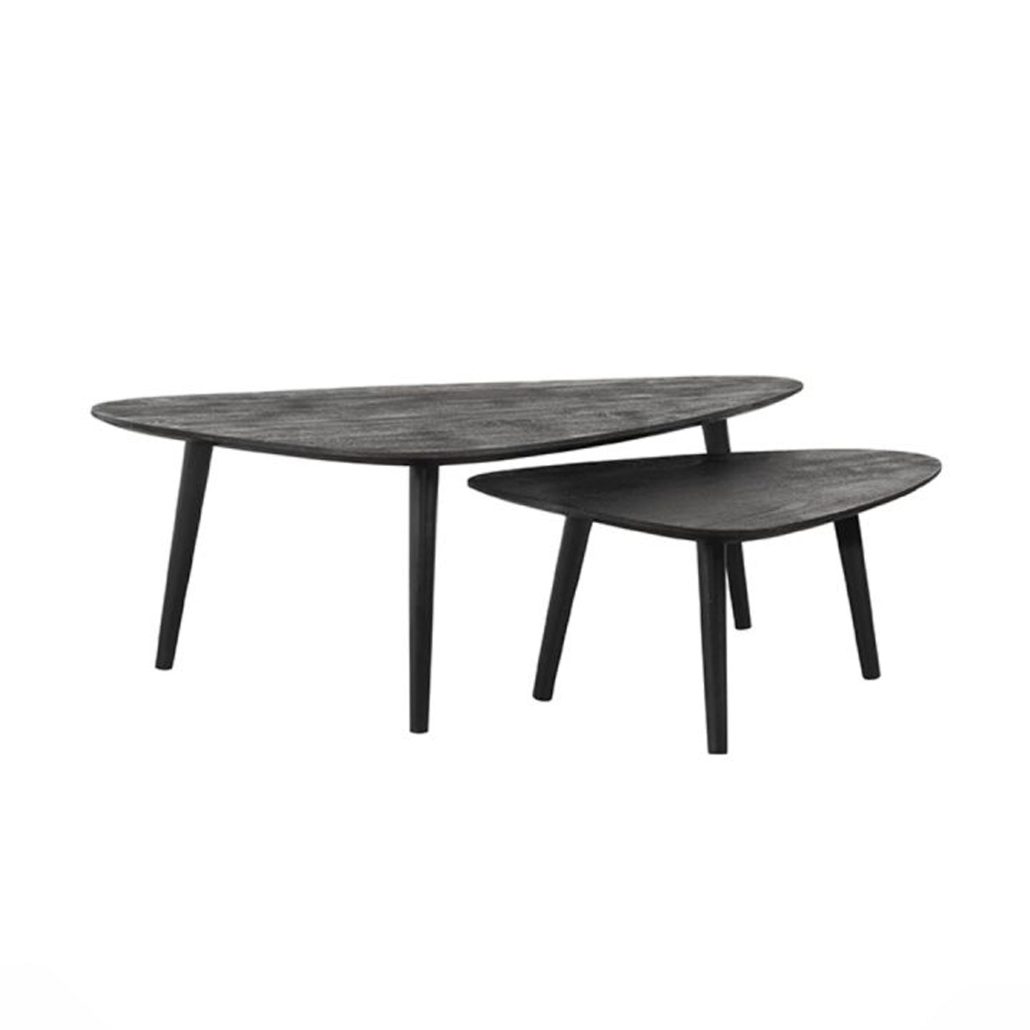 Maak kennis met onze Salontafel Set Rock in Zwart Mangohout, een set die jou de vrijheid geeft om de tafels naar eigen wens te schuiven. Bestaande uit twee organisch gevormde tafels van hoogwaardig zwart mangohout, straalt Rock charme en speelsheid uit. Het moderne verjongde blad geeft een elegante uitstraling, terwijl de drie zwarte metalen poten zorgen voor een vriendelijk en luchtig karakter.