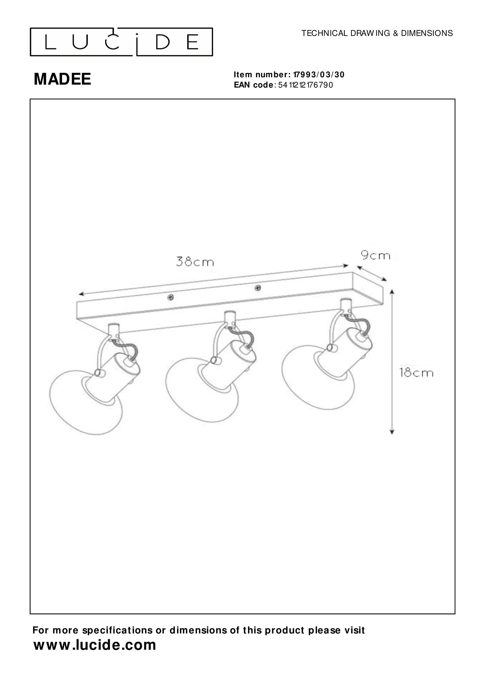 Maar dat is nog niet alles - Madee biedt ook de mogelijkheid om te schitteren met een LED-lichtbron, waardoor je kunt kiezen voor een extra sfeervolle filamentlamp voor een unieke ambiance. Met een verbruik van slechts 3x25 Watt bij 230V is Madee niet alleen energiezuinig, maar ook dimbaar (dimmer niet inbegrepen). Kies voor Madee en breng een vleugje stijl en functionaliteit in elke ruimte van je huis.