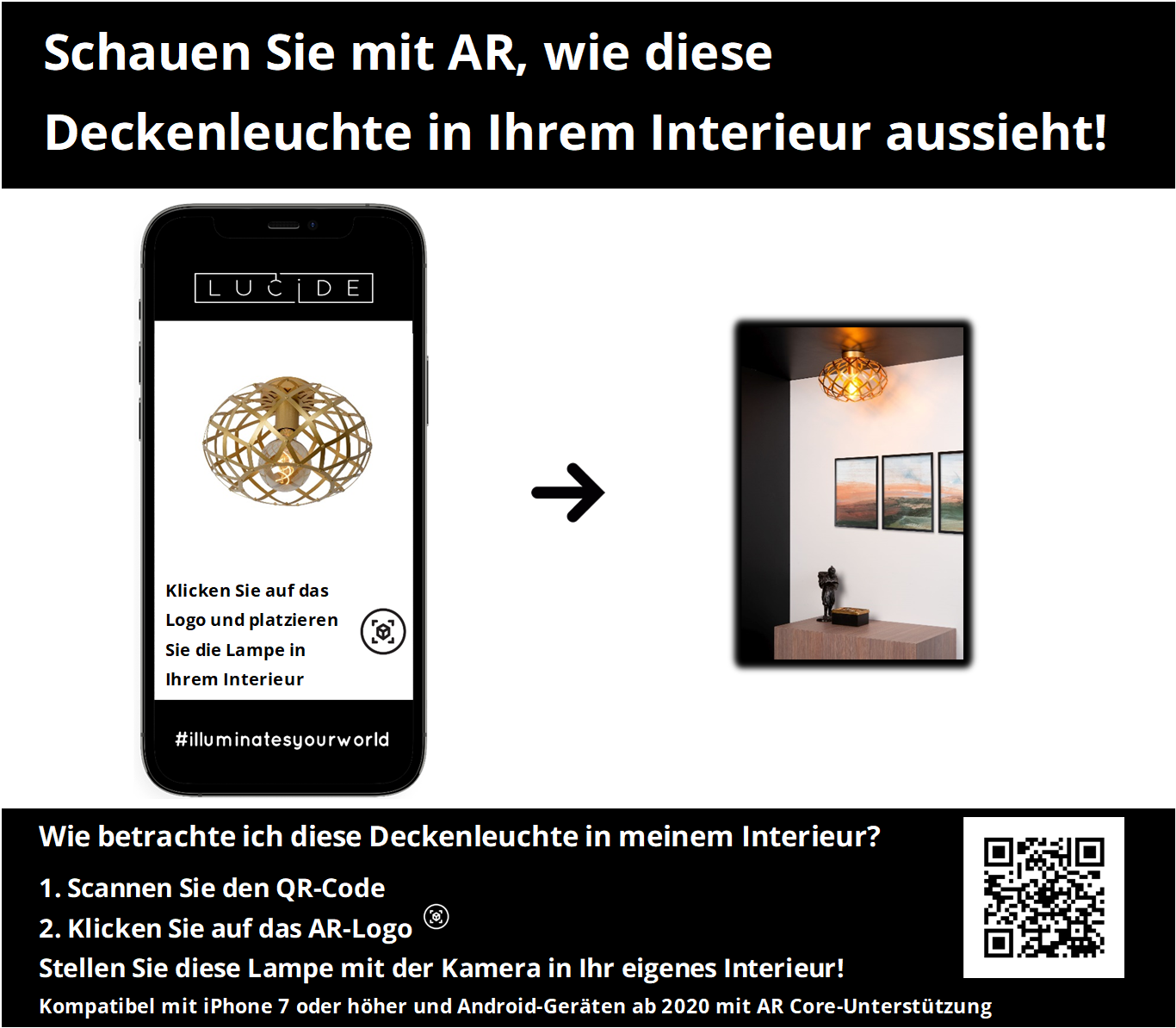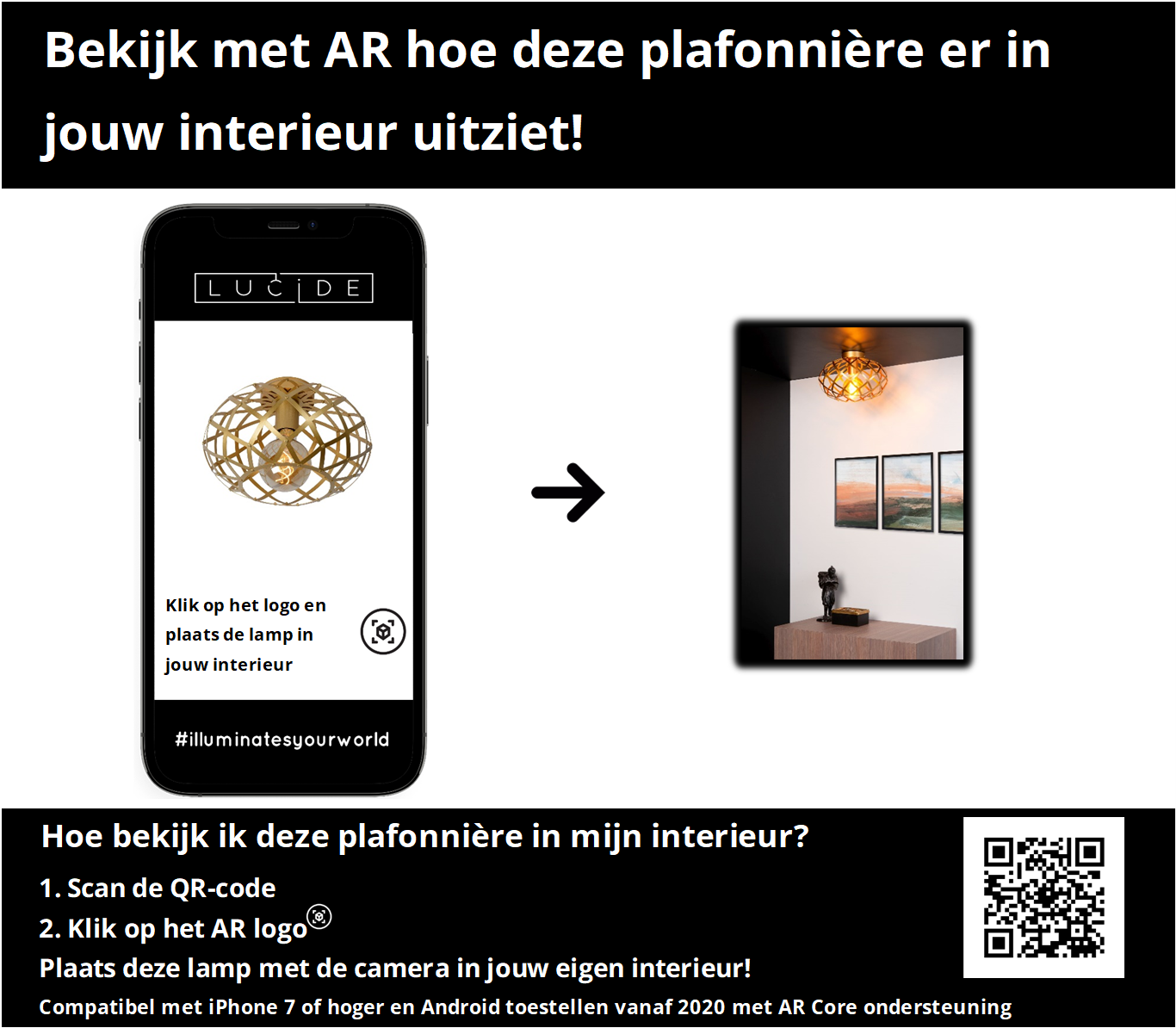 Al onze lampen worden exclusief lichtbron verkocht. Deze lamp maakt gebruik van een E27 fitting. Deze lamp kan maximaal een lichtbron van 40 watt aan. Er wordt aanbevolen een Filament Lamp van Ø9,5 cm te gebruiken.