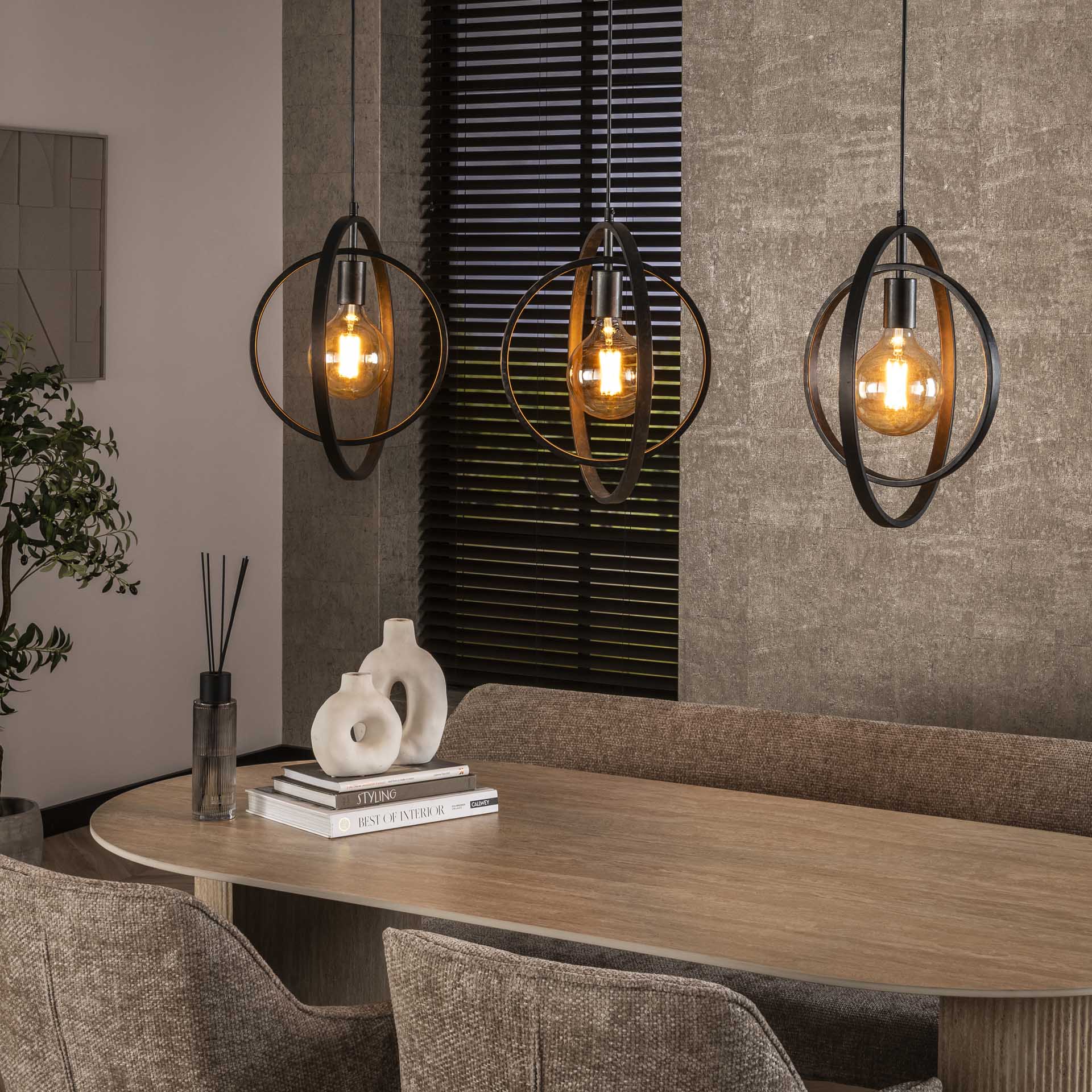 Ben jij op zoek naar een nieuwe hanglamp woonkamer, hanglamp industrieel of een hanglamp glas? Dan is dit misschien wel de perfecte combinatie. Turn Around heeft namelijk een industriële uitstraling door de metalen ringen, heeft ruimte voor grote glazen lichtbronnen en past perfect in de woonkamer of keuken.