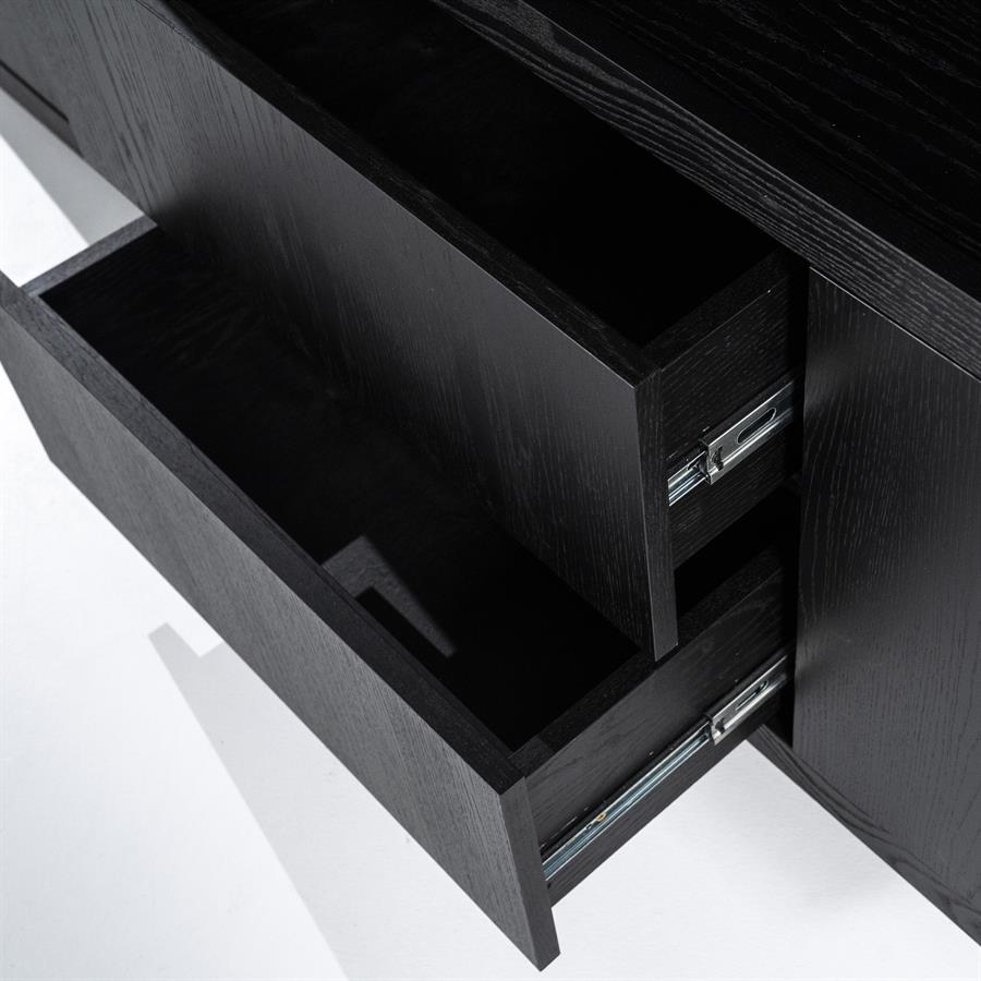 Tijdloos design: De combinatie van zwart en eikenhout zorgt voor een moderne, maar toch warme uitstraling. Hierdoor past de Kast Helsinki perfect in verschillende interieurstijlen, van Scandinavisch tot industrieel.