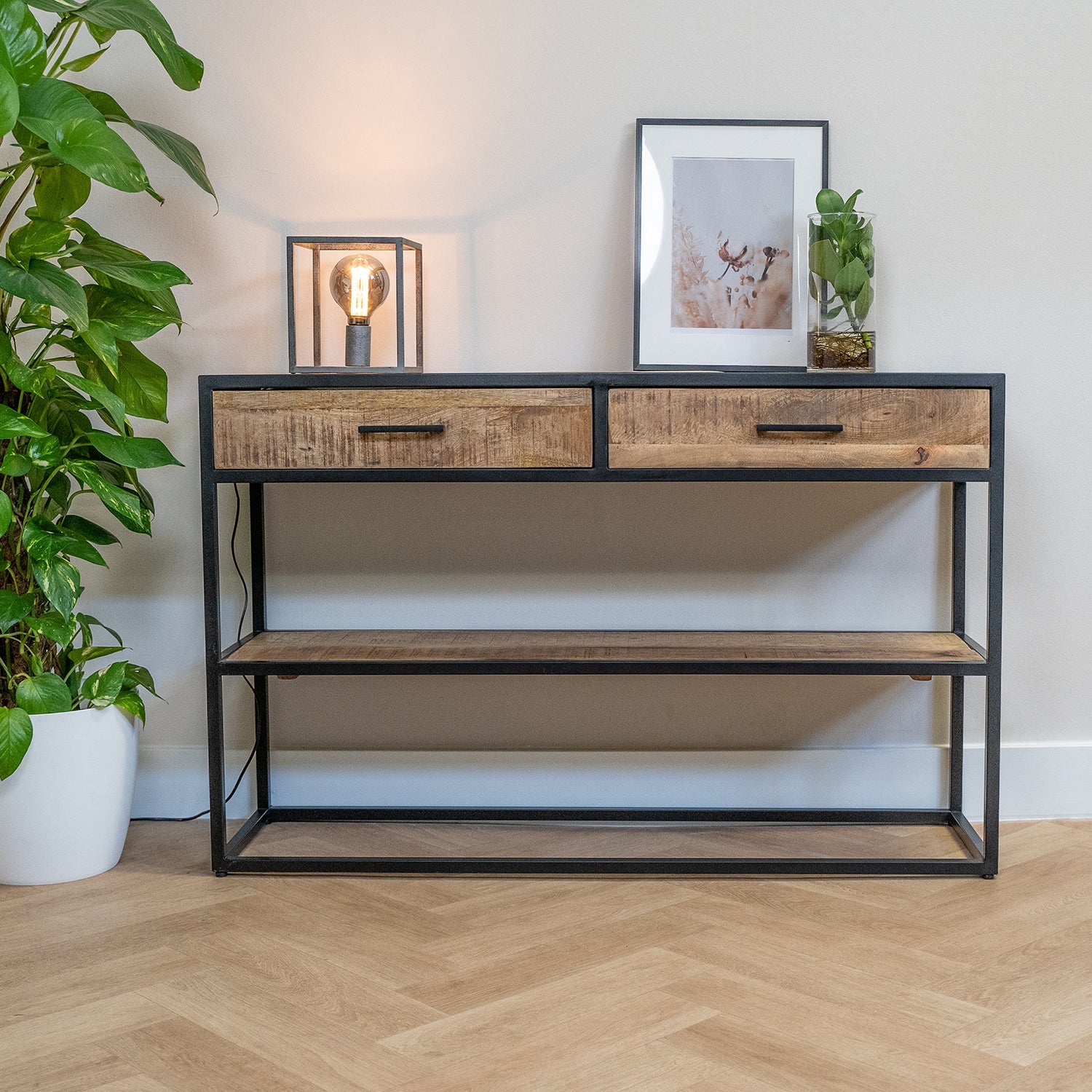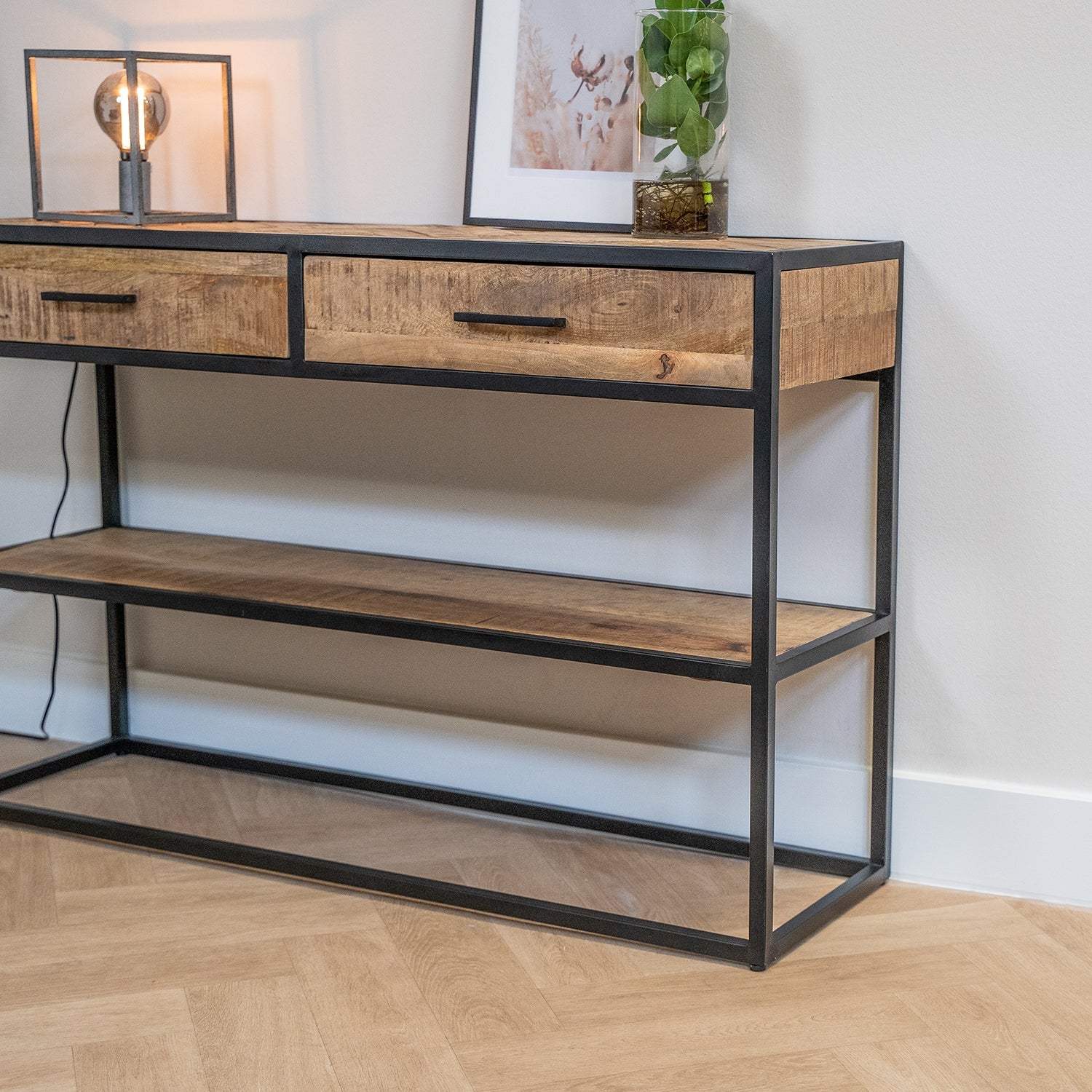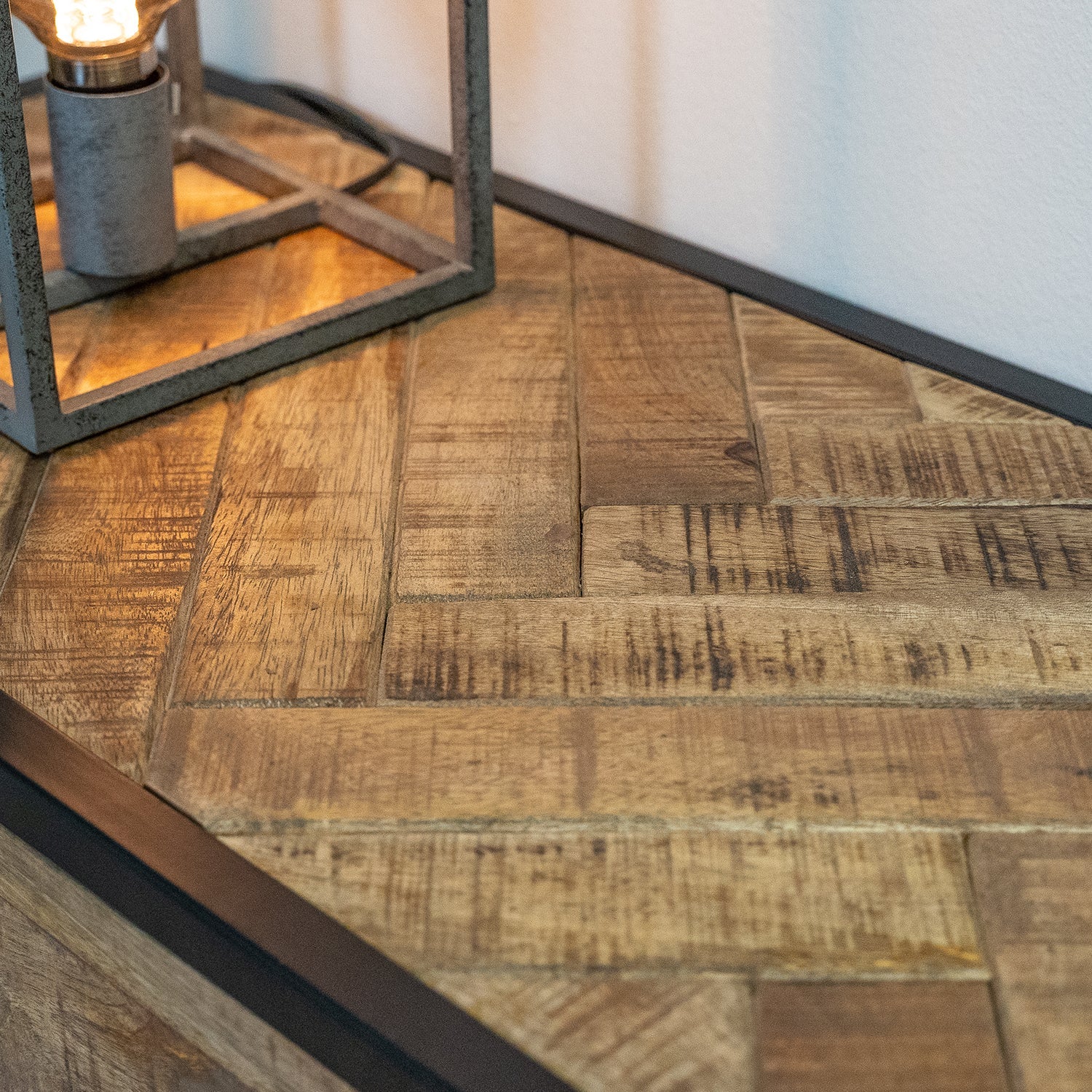 Deze unieke visgraat Sidetable Axel is de perfect aanvulling op een modern, hotel chique of zelf industrieel interieur. Dit mangohouten sidetable is voorzien van een mooie visgraat patroon bovenop de sidetable. De rest van de sidetable is rustig uitgevoerd met vlak afgewerkte lades en legplanken.