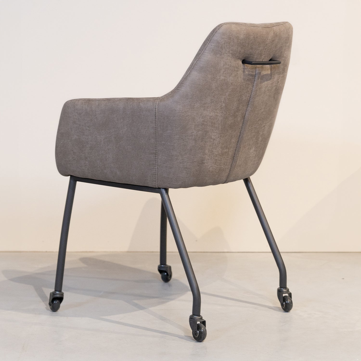 De prachtige vormen, comfortabele brede zitting en handige armleuningen zorgen voor een mooi design met maximaal zitcomfort. Daarnaast heeft de Lenny eetkamerstoel wieltjes en een handgreep aan de achterkant van de rugleuning. Deze eetkamerstoel met wieltjes is daardoor makkelijk te verplaatsen.